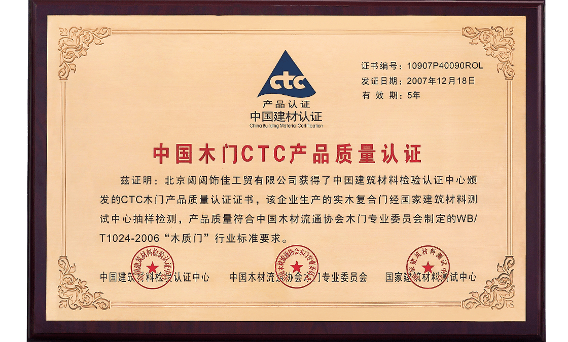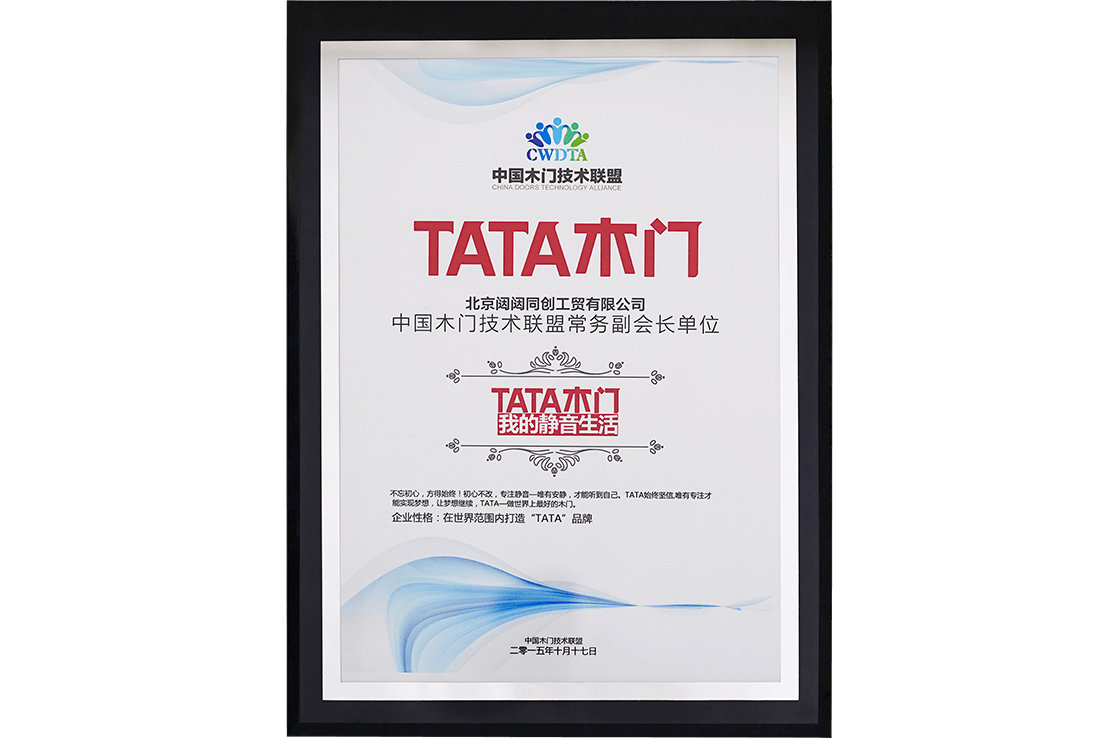 中国建筑装饰协会授予“2016中国建筑装饰行业设计领域推荐品牌TATA木门”