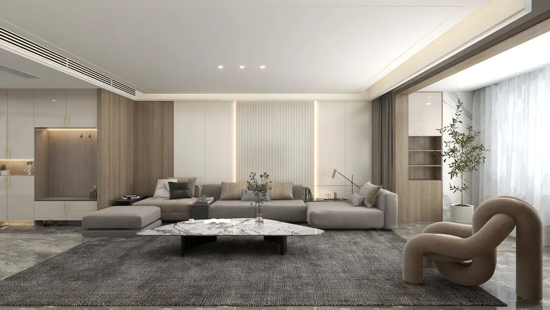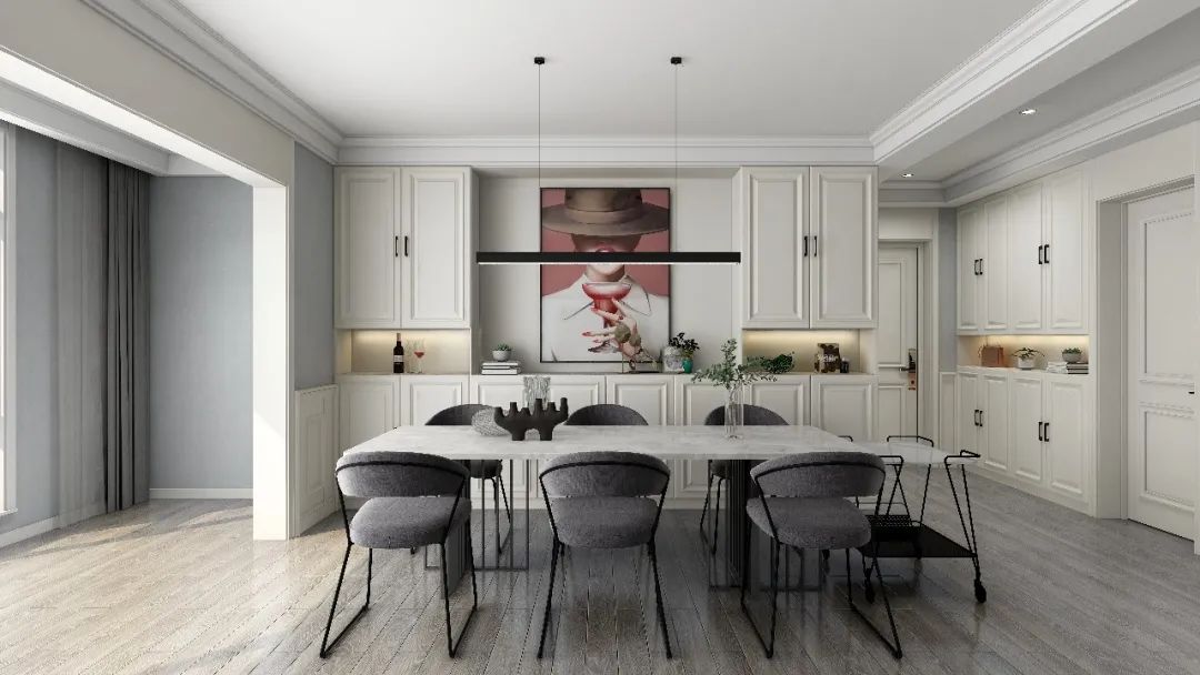 简洁大气的空间设计,流畅利落的线条,都传达着现代风格干练且追求格调的生活态度。全屋采用【齐柏林灰】为主色调,无论是电视背景墙还是餐边柜的设计,都低调地显示出具有丰富层次的美感。简约又不失温度,在每个细节中都能感受到居室主人对生活的热爱和精致追求。