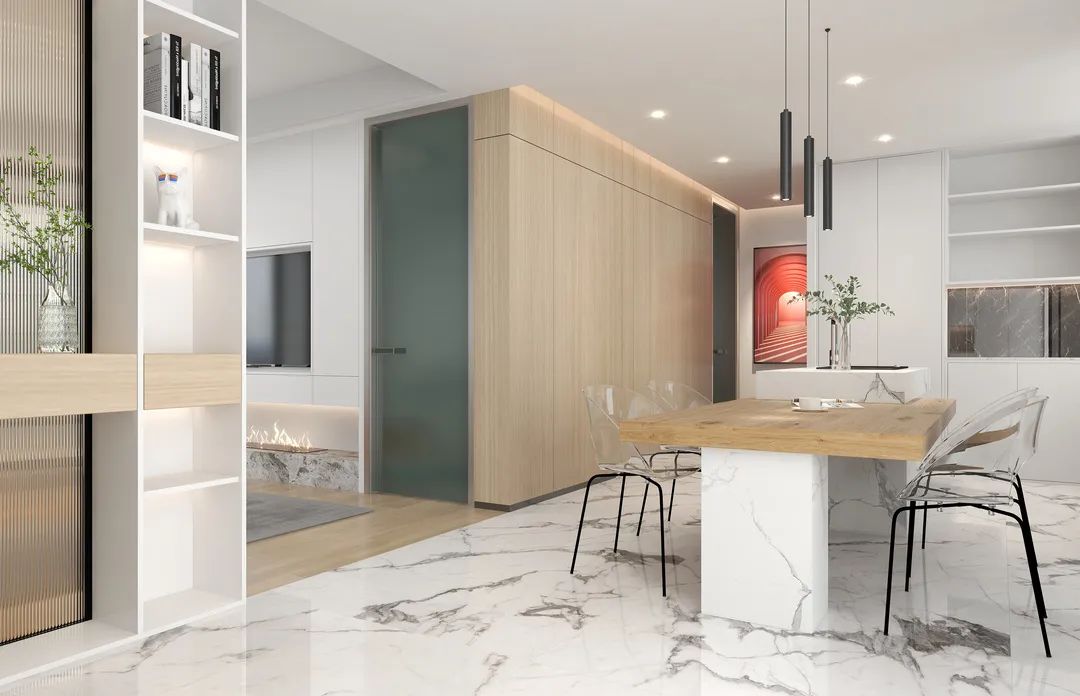极简,就是极美。极简的设计风格通过线条、材质、元素等细节来展示空间的高级、前卫及通透感,宛若有清风萦绕。本案采用了TATA木门年度新品【极简降噪门】,在极简降噪门AG玻璃面板的映衬下,整个空间色调相得益彰,干净的配色给家里带来最纯净的视觉享受。