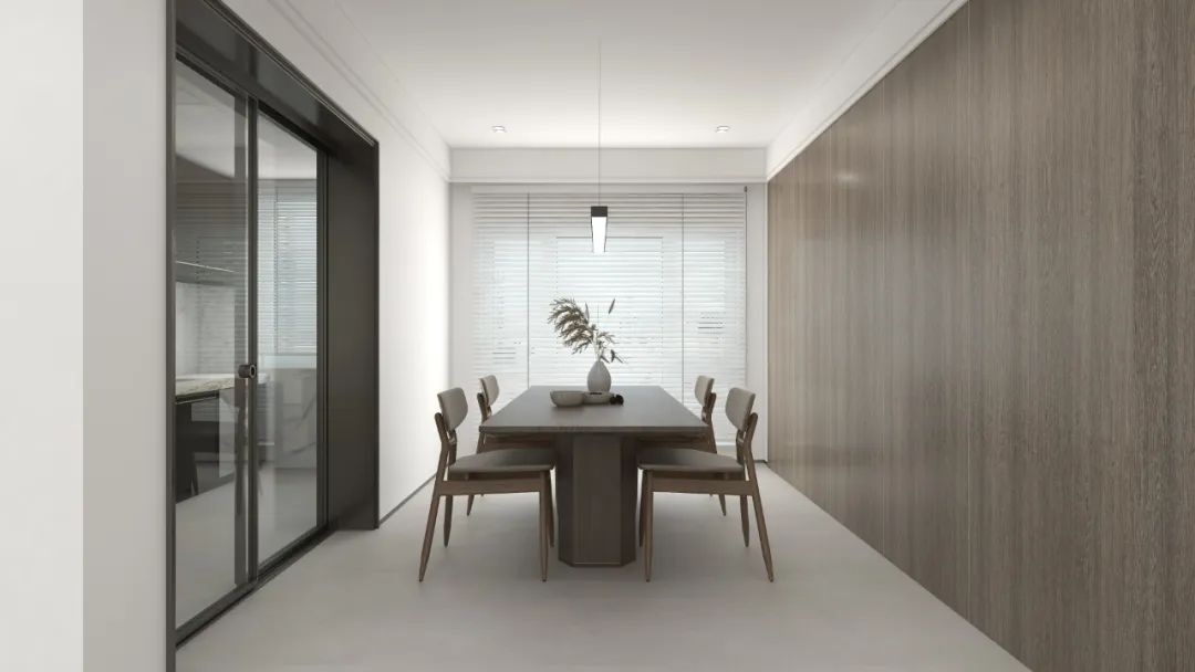 选用【极窄推拉门1606系列】打破密闭空间带来的闭塞之感,至尊雅致的黑色为环境塑造沉稳基调,安坐其中阔视生活,带来不凡心境。原木色系整墙与餐桌搭配,协调整个家居的侘寂风格,让你目光所及,以简见大。