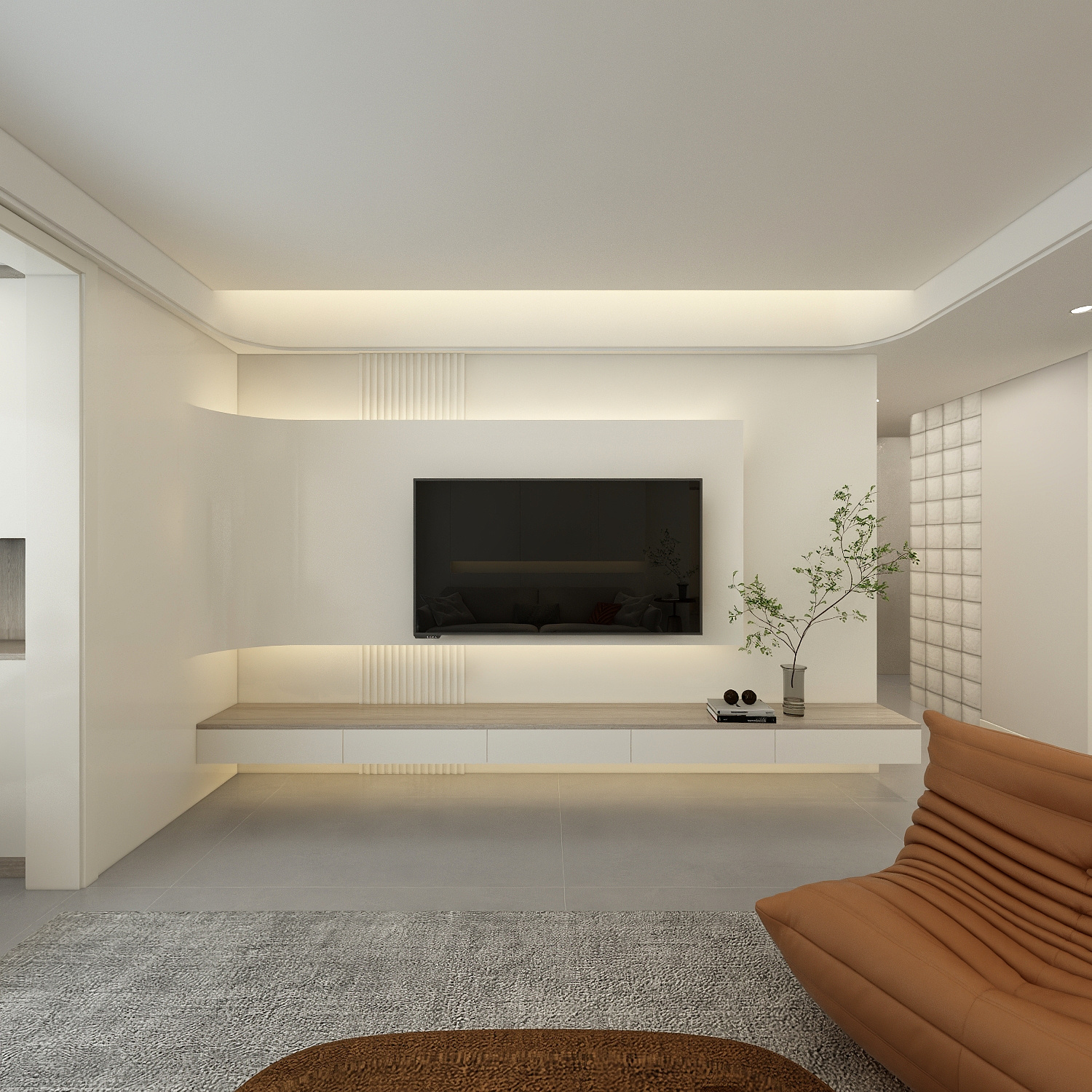 电视背景墙以奶油白为主,搭配上简约的线条,增强空间的层次感。