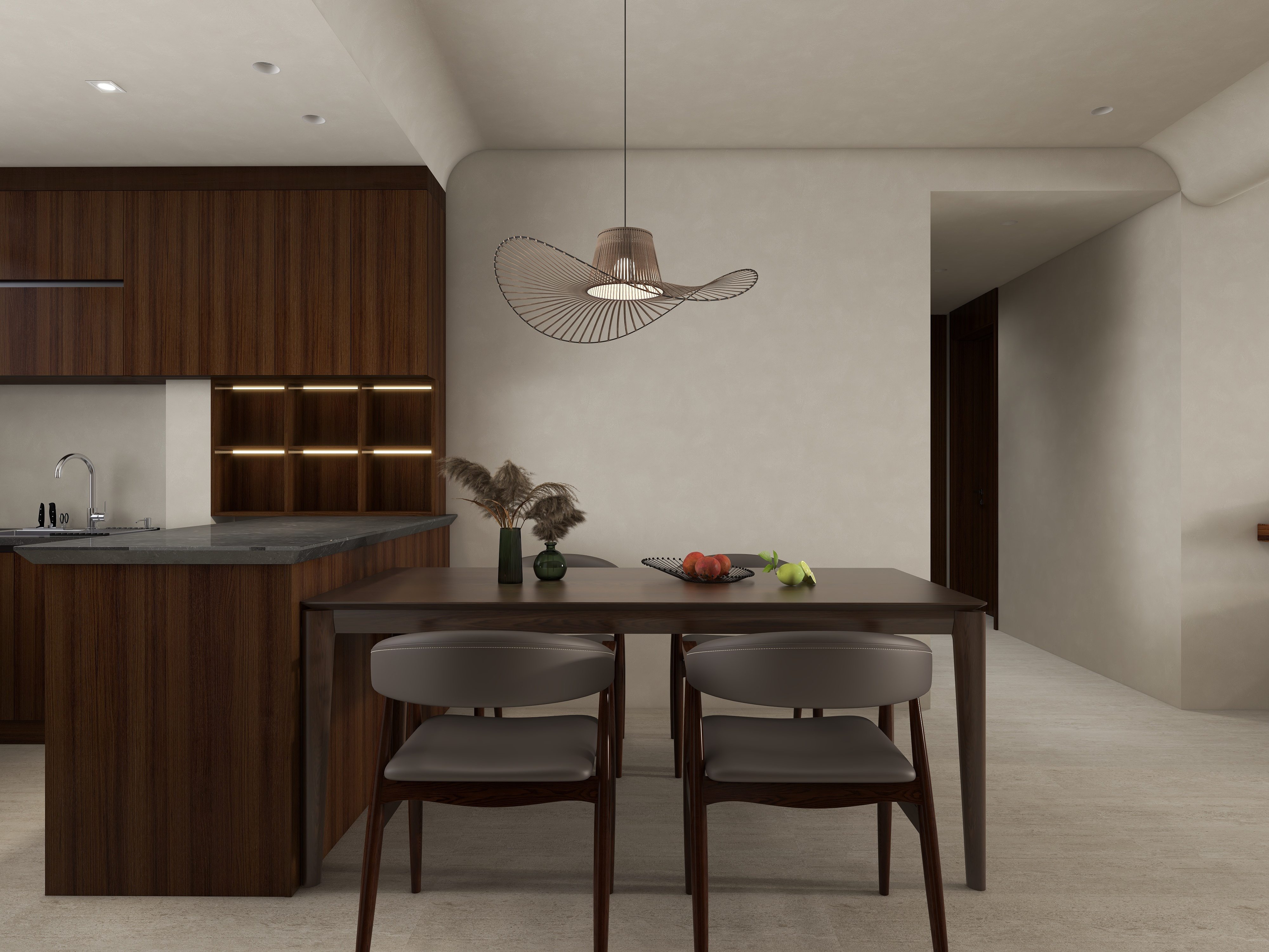 将极具微妙的现代风格融合进简约侘寂的气息里,整体空间的配色自然舒适,独特而低调的家具营造出冥想的氛围,到处透露着对安逸生活的诉求。