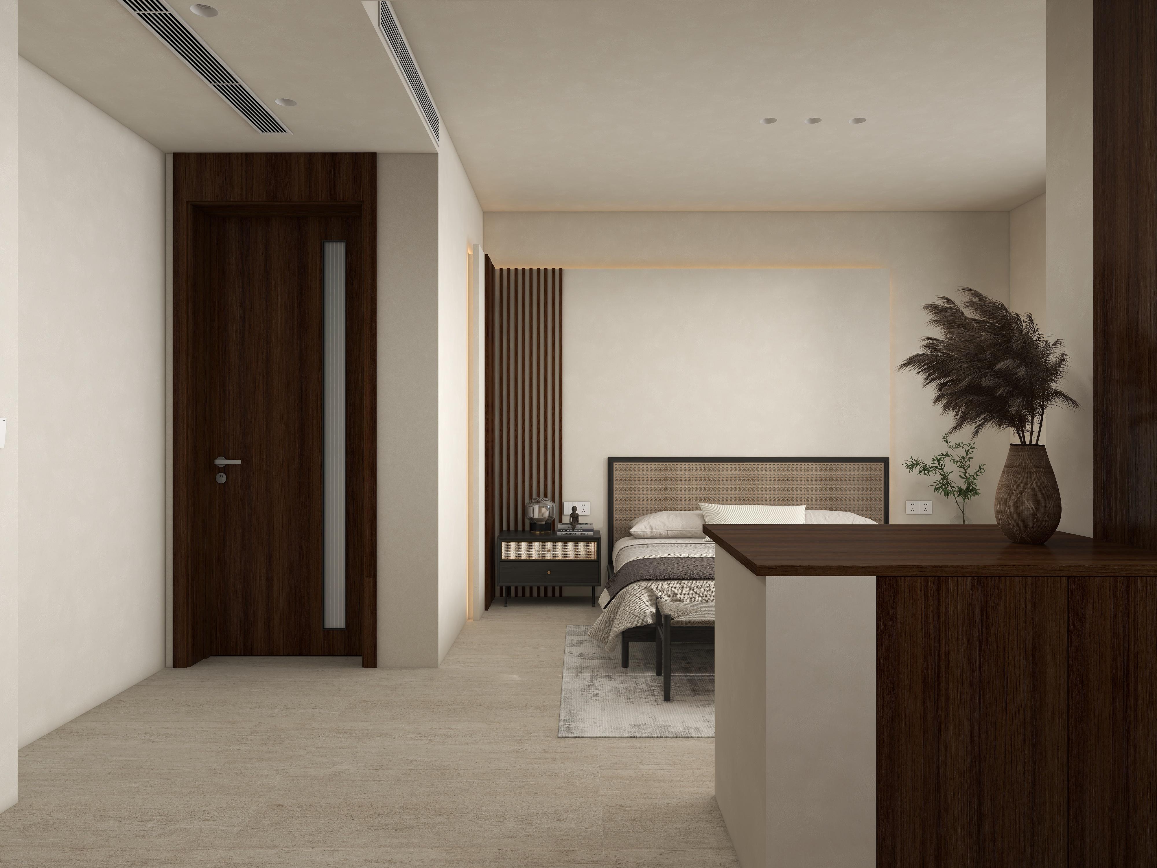 由于侘寂的空灵之感来源于空间的“空”,所以墙面选择没有选择做复杂的造型更多是留白,将空间的样貌实实在在的呈现。