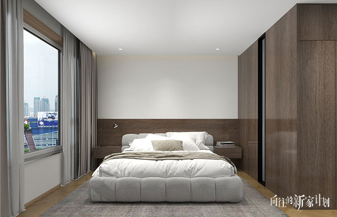 卧室门全部使用【TD-001-米橡色】,通顶+隐形门的造型,使整体空间无限统一,视野上极具美感。