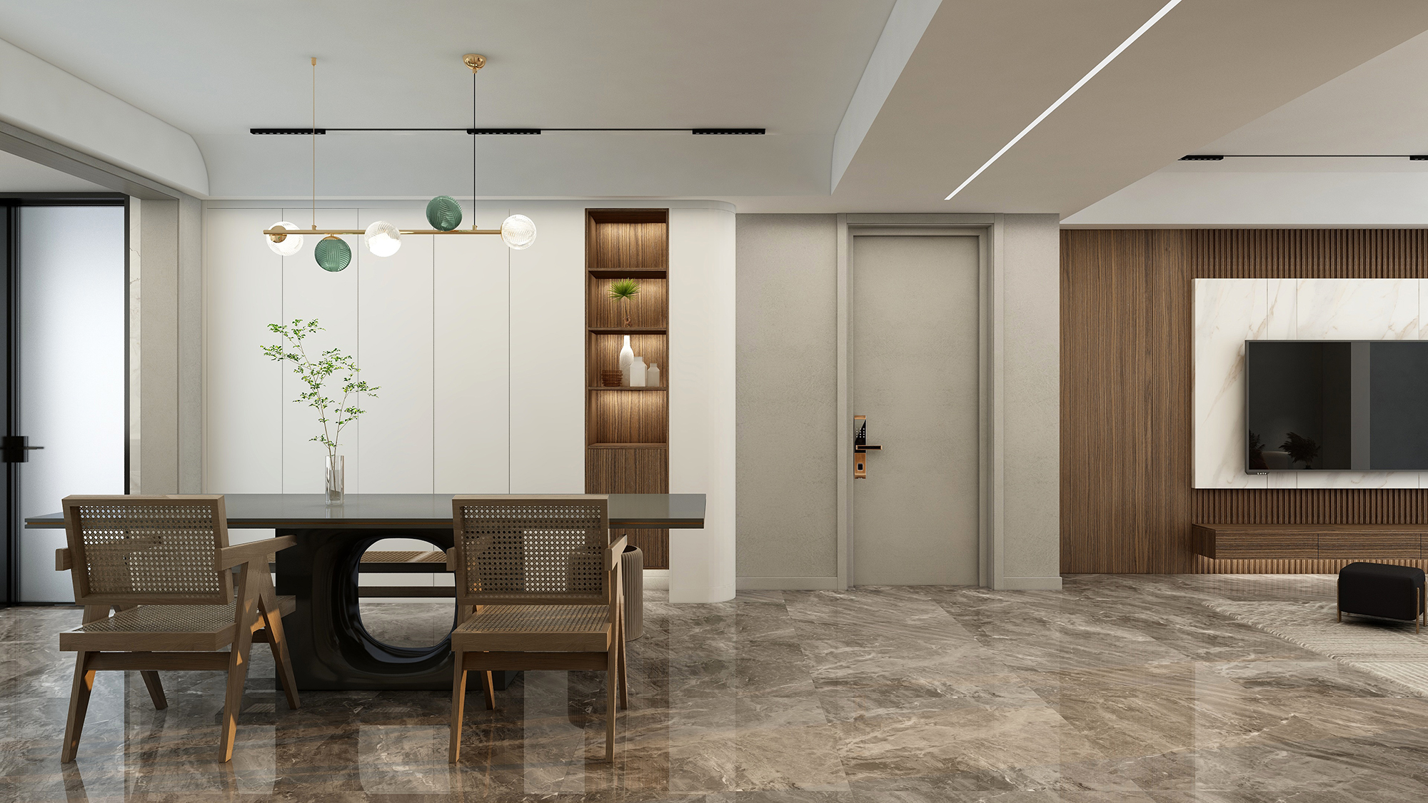 原木系入户门,质感温润,给家营造一种简约温馨的风格;