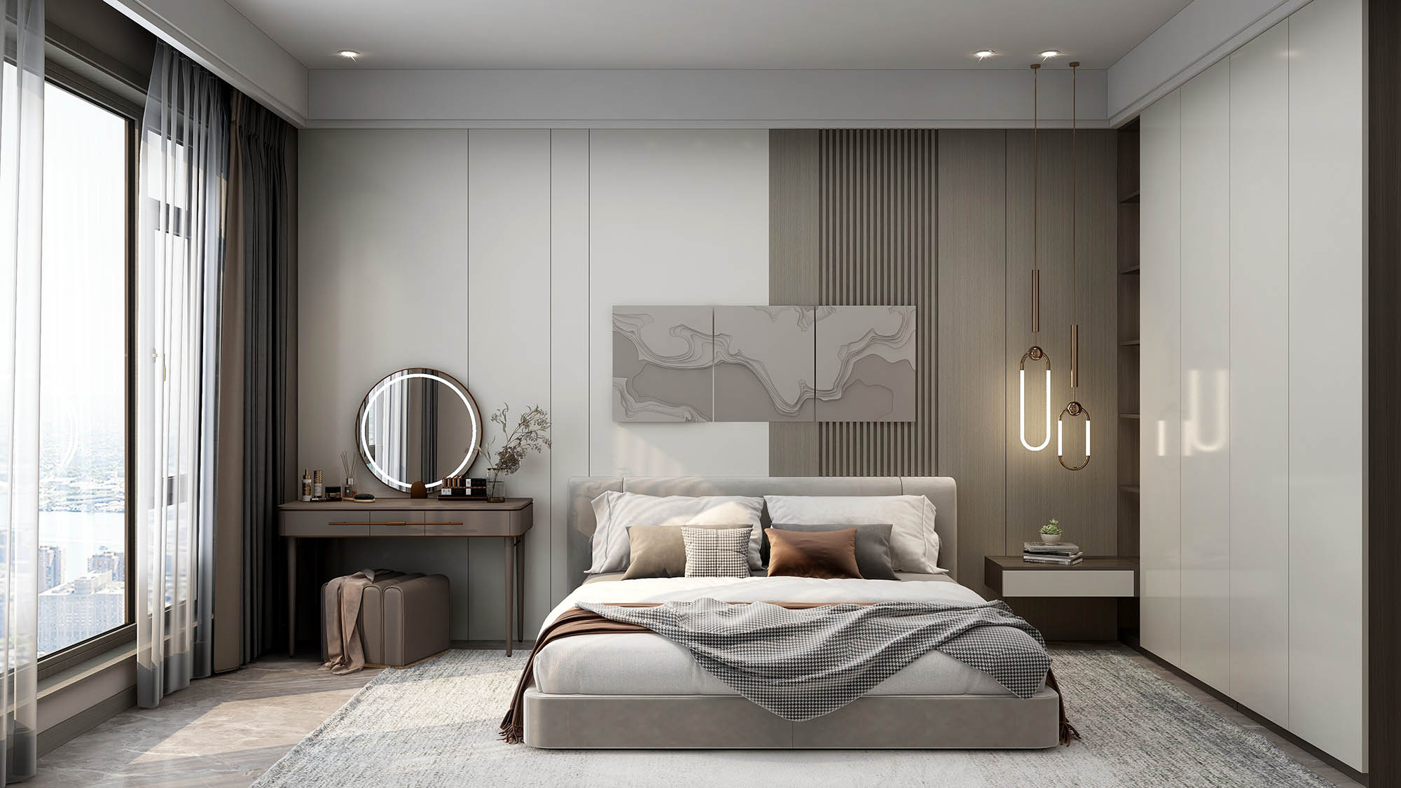 优质的睡眠,可以极大改善情绪,提高生活工作的效率。卧室作为核心睡眠空间,在门的选择上首要得考虑降噪隔音效果。增加木门的厚度可以有效隔音,门扇与门套贴合的越紧密,也可以有效降噪。