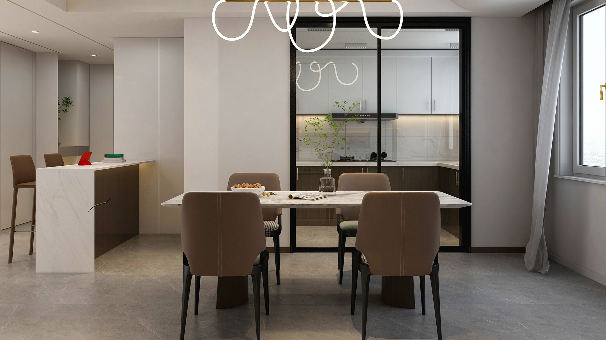 现在流行的厨房极简推拉门,通透的玻璃设计不仅能让空间在视觉上有了延展,极窄的边框设计也能有半开放式的厨房体验。以极简的设计,将家居空间有序划分,升级全屋美感。