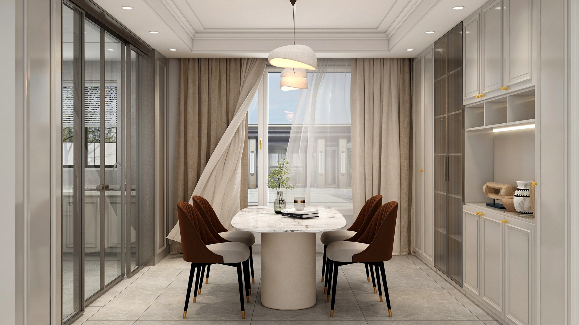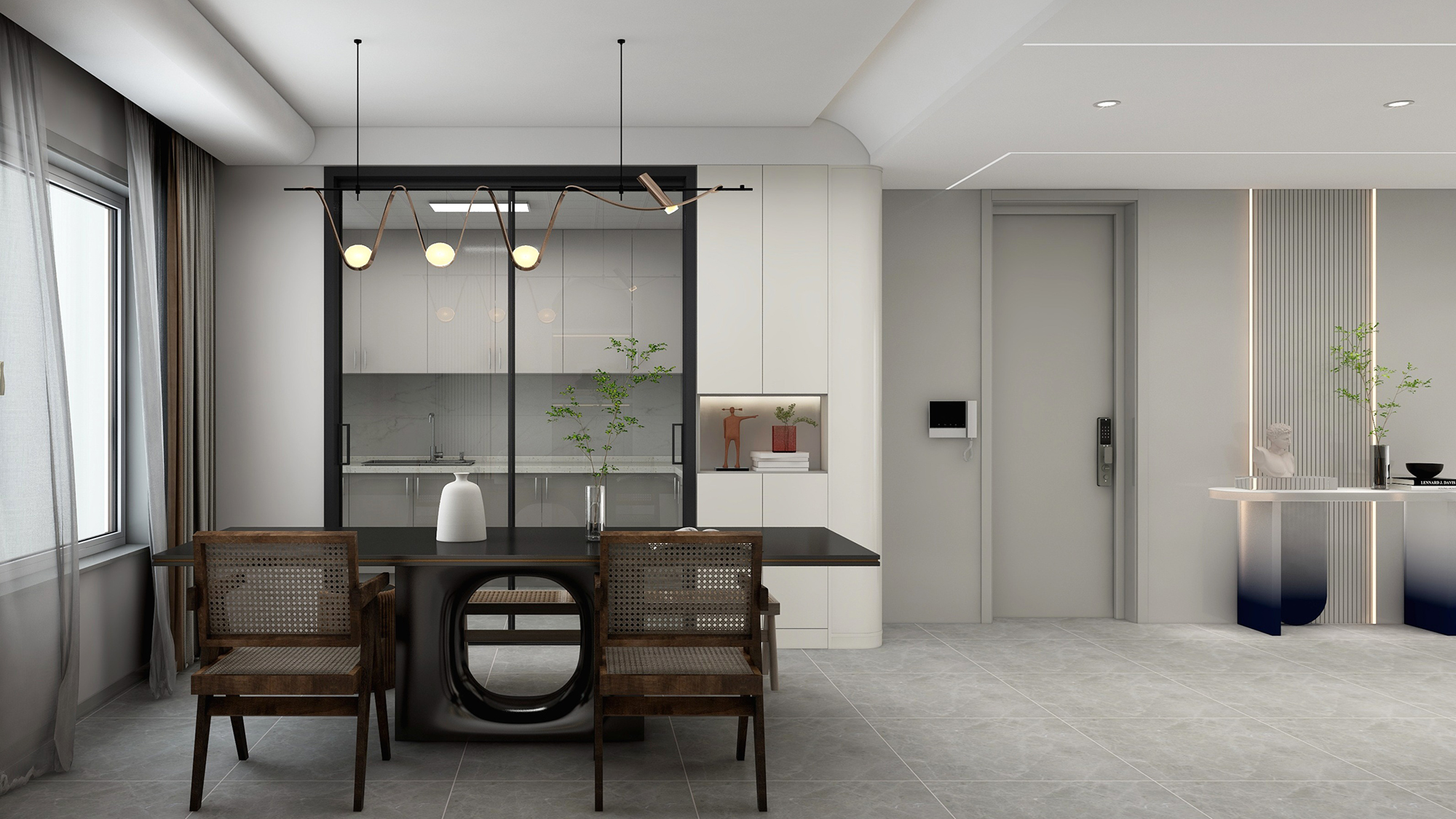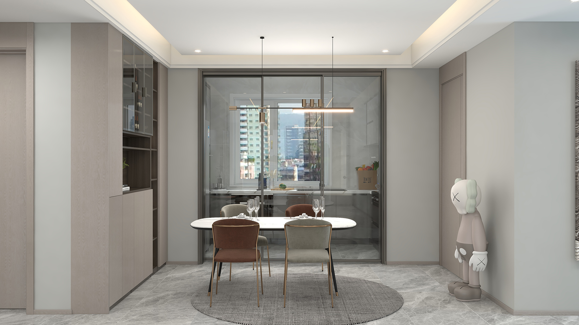 极窄边框,回型拉手搭配超低轨道,无轨设计。抛开一切复杂的装饰,专注功能性的同时删繁就简外在化的设计,极大程度发挥玻璃清透的作用,让一眼望去都是简单的美好。