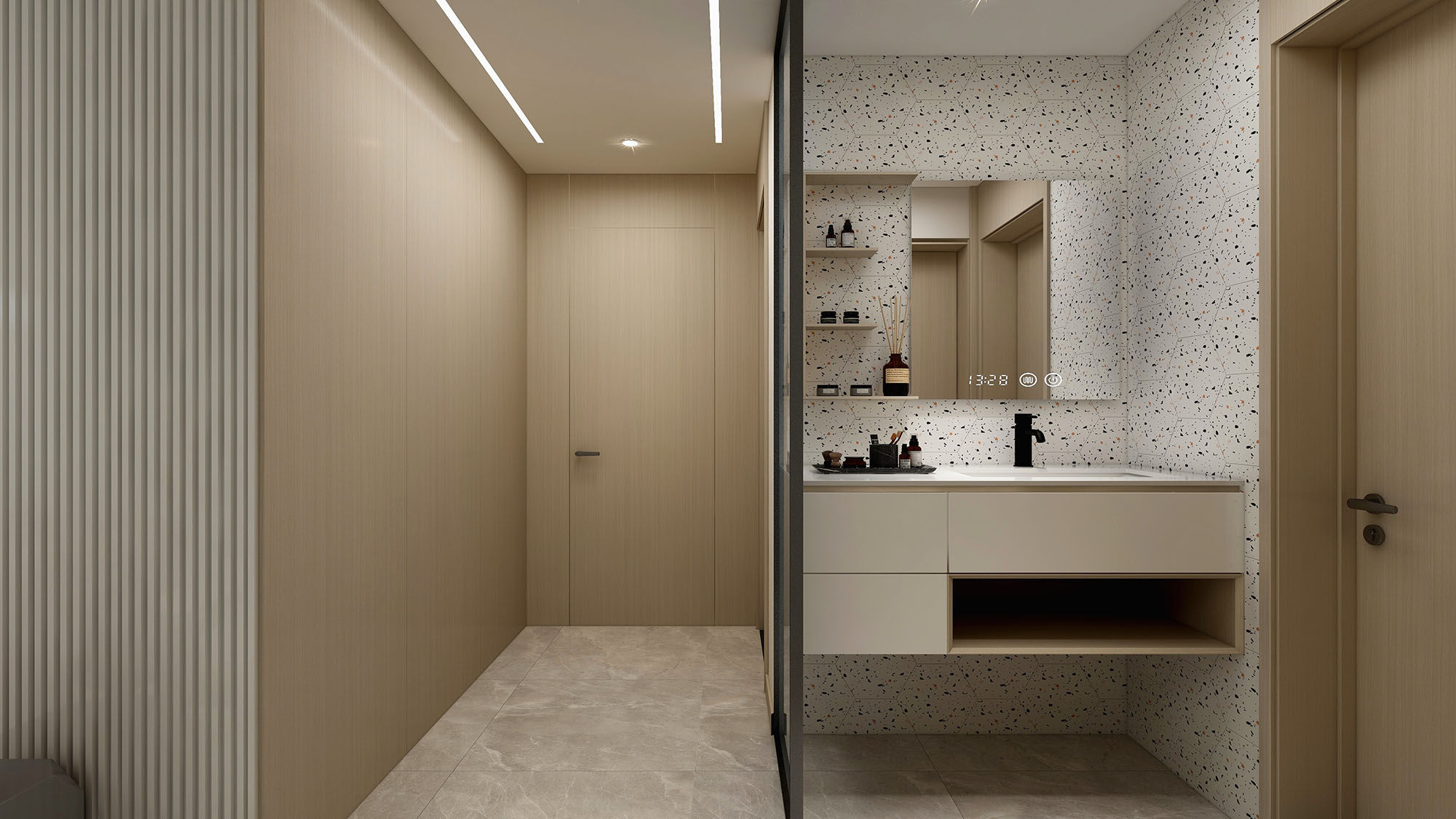 TATA木门室内门@001,搭配45°斜口磁吸,有效降低噪音传播,关上房门,享受安静生活。
