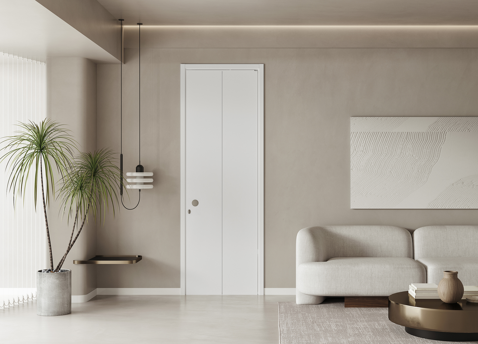 相比于传统平开门,折叠门量体更轻盈,轻薄优雅的平折门像悬浮在墙面之上的一幅装饰画,丰富的材质与造型变化也是让小空间充满高级感的全能设计。强设计气息的一扇平折门简约而不简单,可以作为墙面装饰为家装点亮色彩。