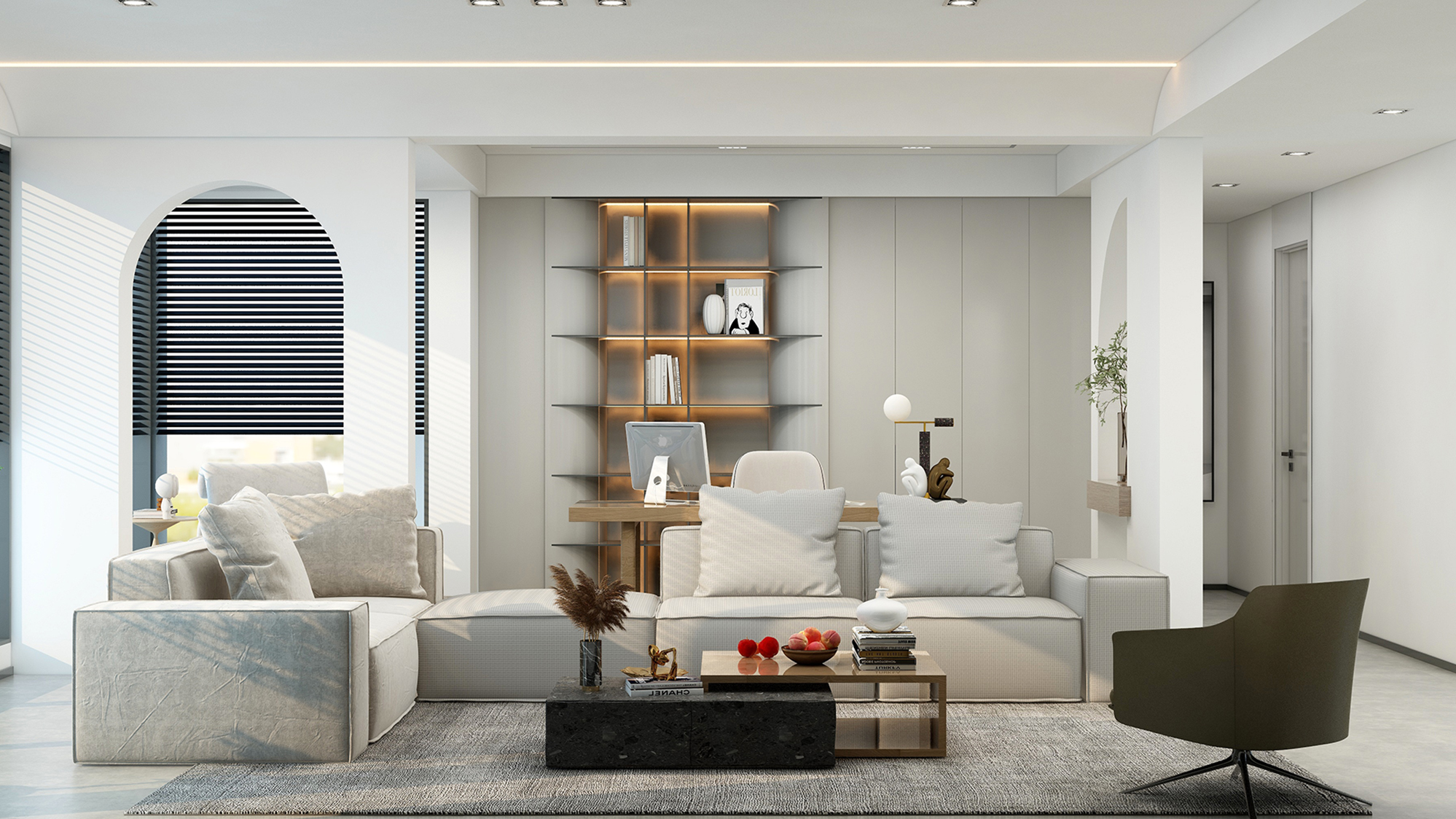 可搭配胡桃木、梨木系家具塑造极简质朴的舒适之感;搭配黑色金属极简线条营造干练极简之感;搭配奶茶、咖色的皮质家具又会带来不一样的“奶油风”