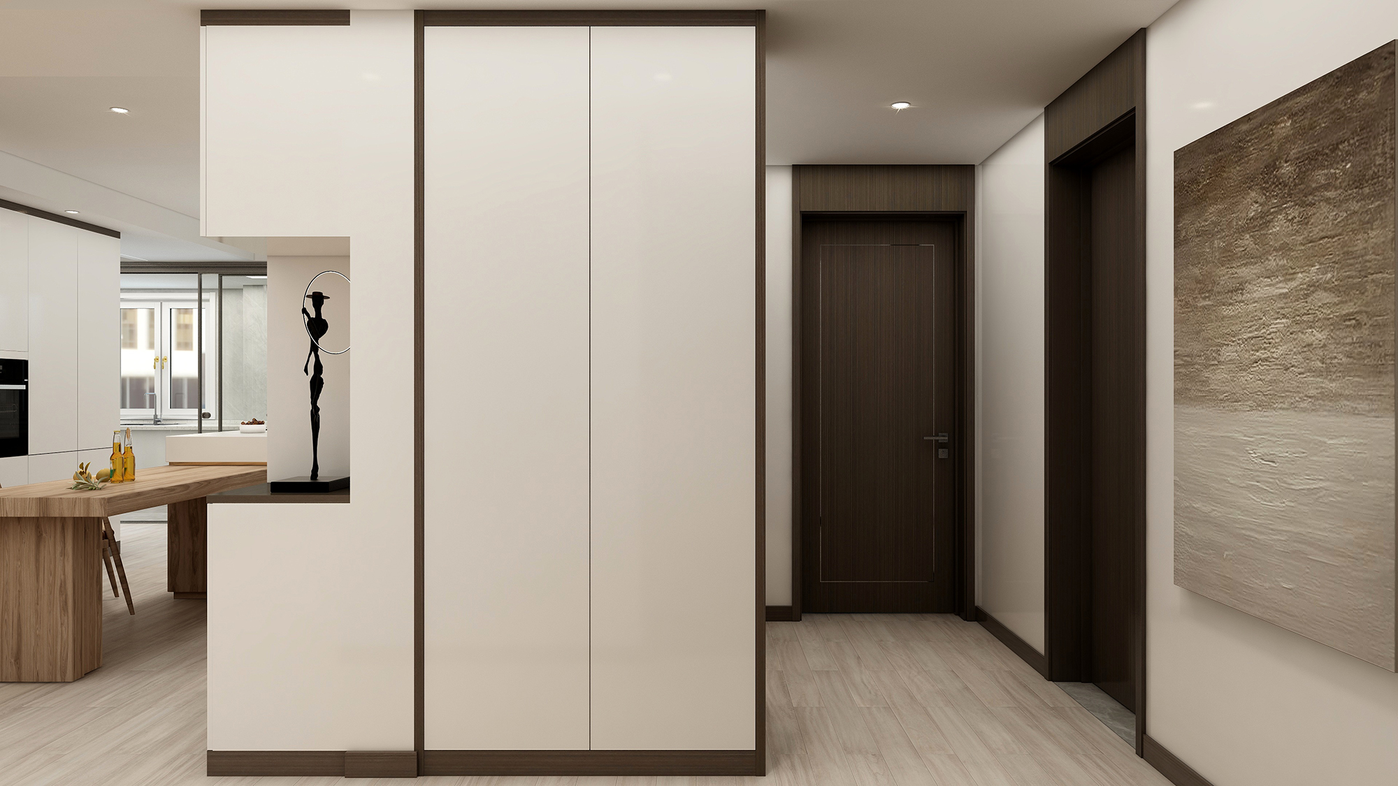 整体简约的造型设计,木门从整体到局部隐藏式合页使得门整体更加简约,整体空间更加简洁利落,在现代家居环境中兼具实用感和艺术气息,让家里变得清新而有灵气。