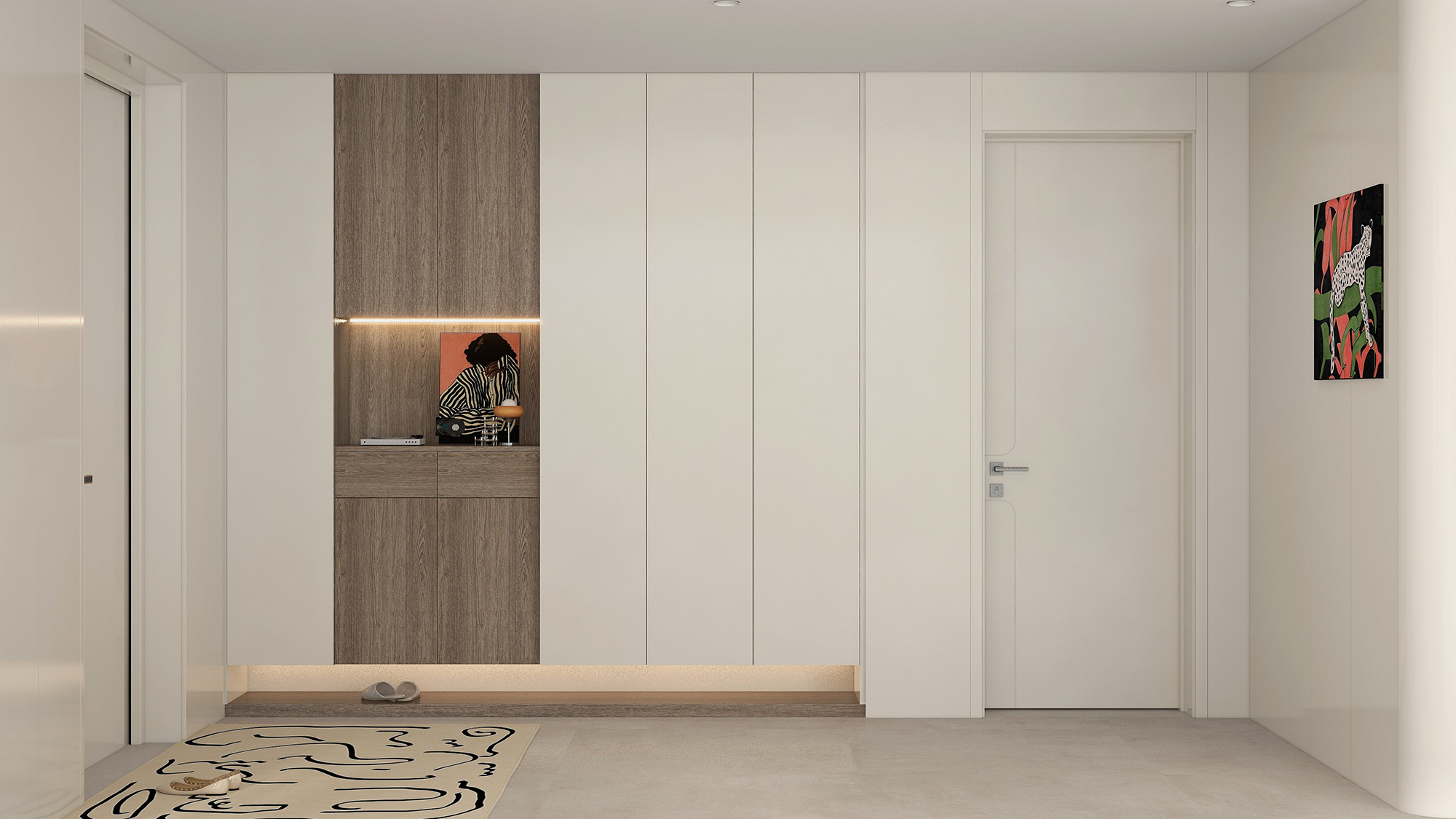 颜色和门体设计在提升小家精致度的同时也具有视觉放大空间的作用。即颜色最好选用 浅色系为主:奶油色系,杏色等 。颜色温柔大气,适配度高。花纹的选择遵循:越简越美法则;越细越精致。执手也是影响门体颜值的一项。执手与门体同色的设计更能给空间带来统一性的同时增添一丝优雅和细腻的精致。