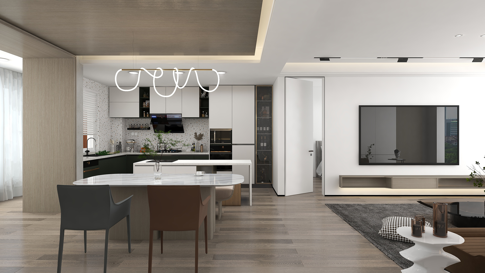 开放式厨房的宽大通透是当下年轻人的心头好,但中式菜肴的烹饪方法却是一道“门槛”,极简推拉门的不仅在视觉上建立的开放厨房的超大空间,在烹饪过程中也同样可有效阻隔油烟污染。