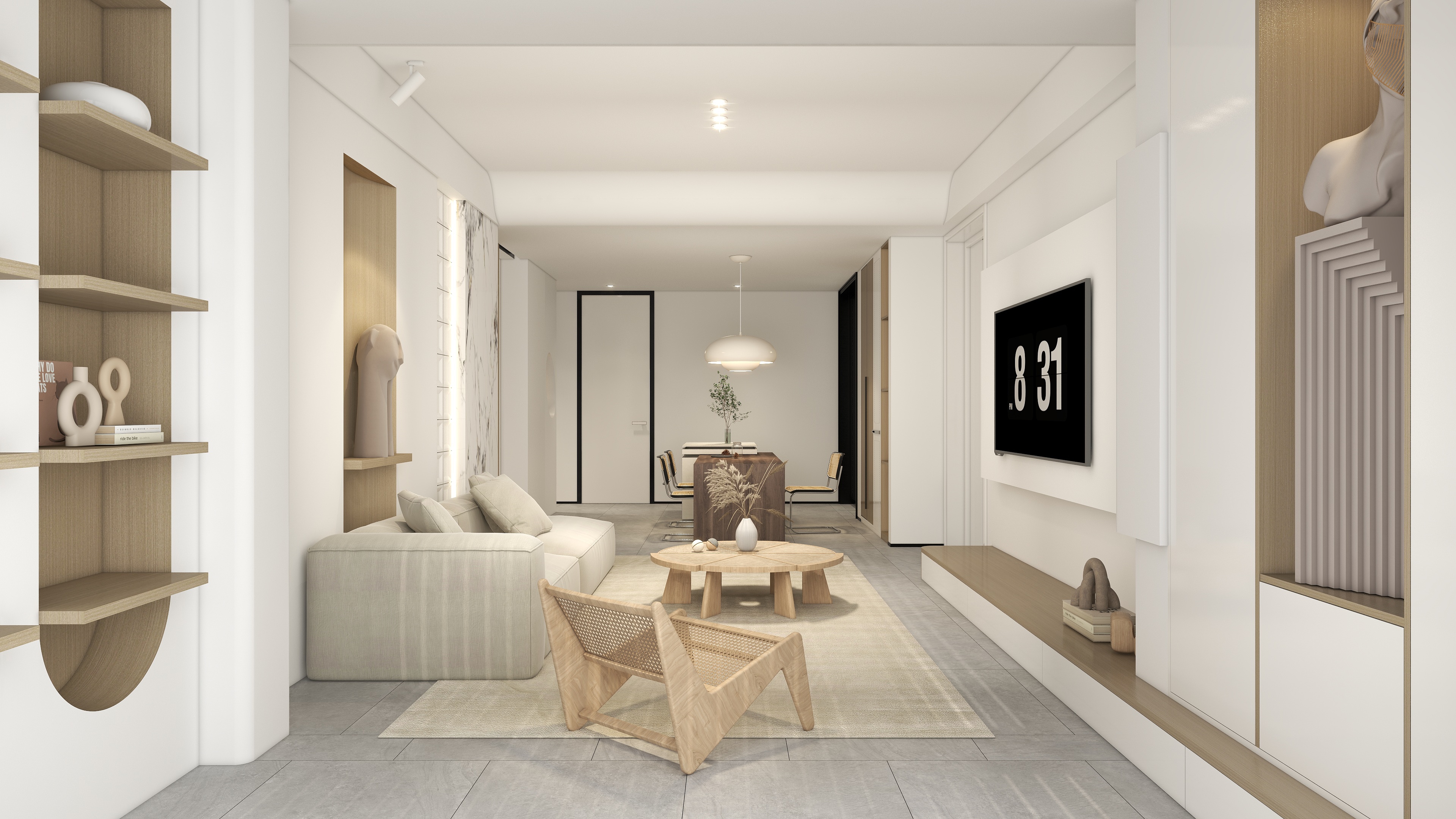 主色调是原木的色系,当中在加上了贝母白纯净温暖的色泽,为家里增添一封美好视觉,奢而不华,简约自然,呈现一种浪漫优雅的空间之美。