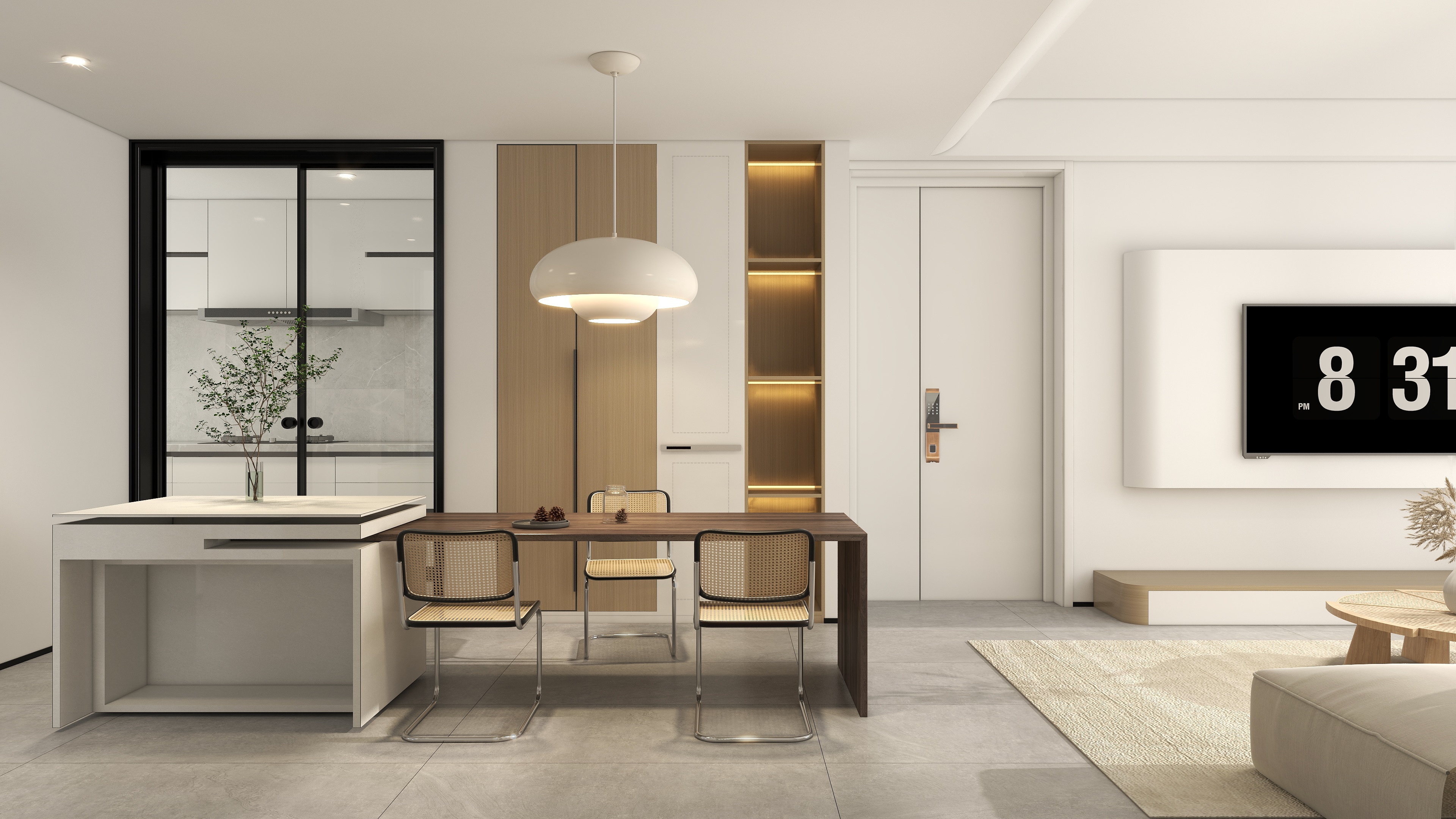 原木色调于空间之内徐徐展开,岛台上的一抹绿意蓦然迸发,简洁雅致的布局激发了对空间与自然生态交融的前瞻性探索。