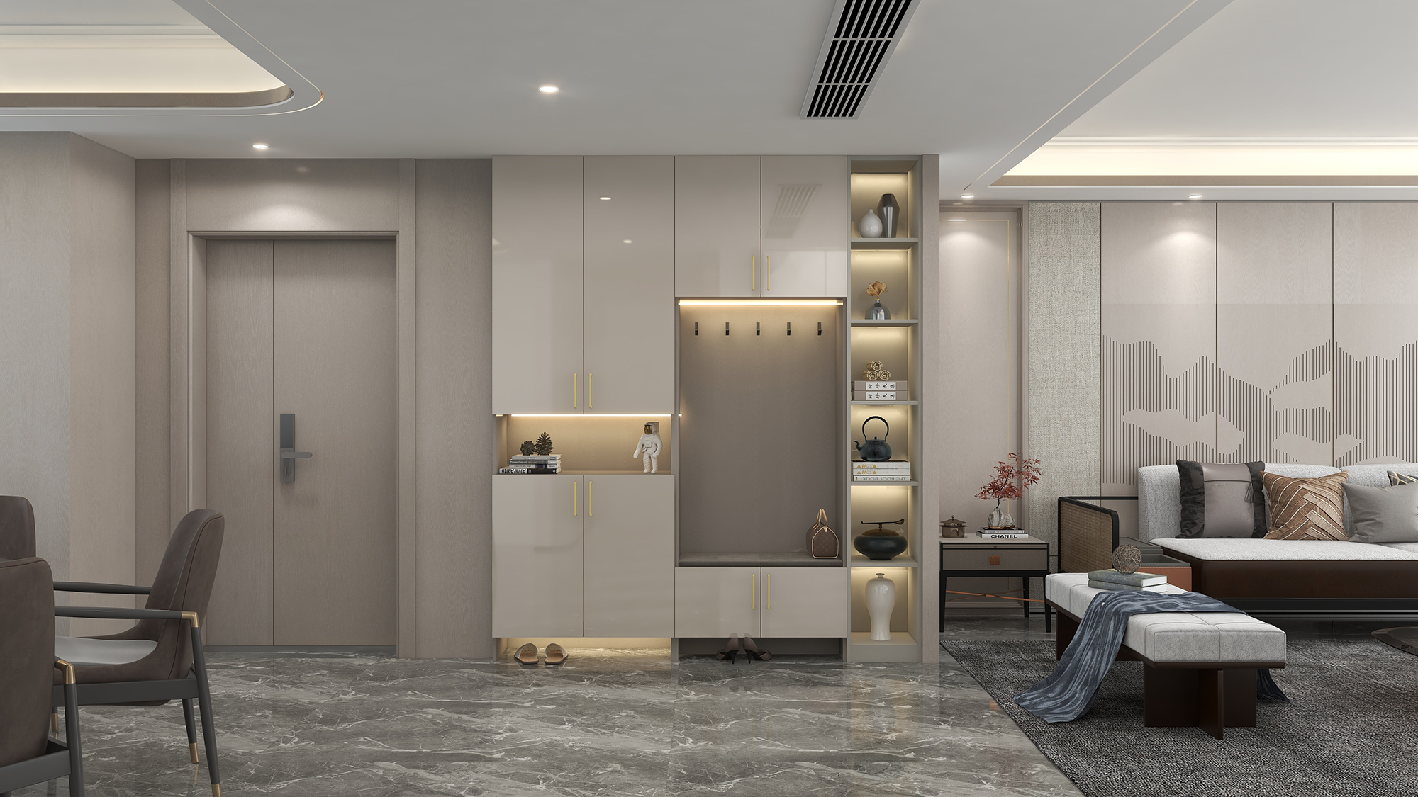 灵感源于中式山水理念,打造木门新中式风格。以古典简约之美,诠释新中式家居底蕴在木质面板上,通过凹槽的拼接营造出国画中山水交融的意境,横竖间刻画东方空间美学。木门搭配金属色执手,典雅之感扑面而来