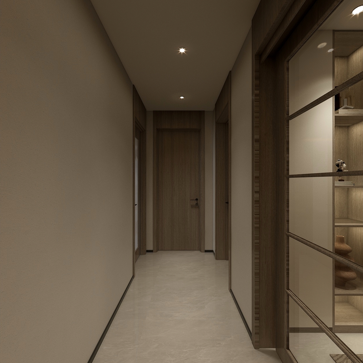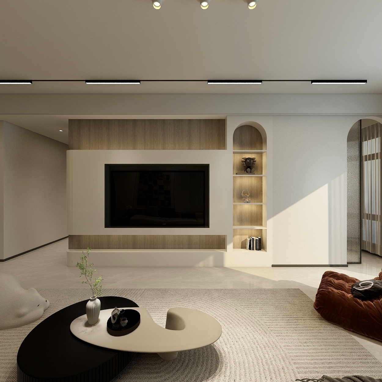 现代简约与侘寂美学的融合,融入微水泥的柔和,原木质感的温暖折射对静谧的喜爱,万簌俱寂,却满含对生活热爱的心境。