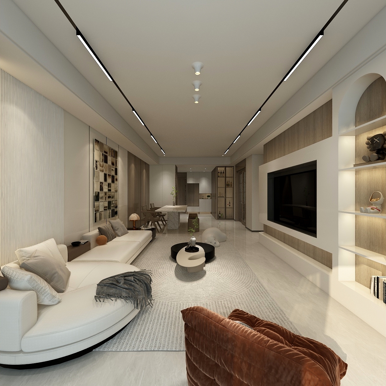 本案所遵循的是以现代简约的设计为主,加上一些侘寂风所特有的原生态,打造出一个质朴静雅却又隐约透露着轻奢感的空间。