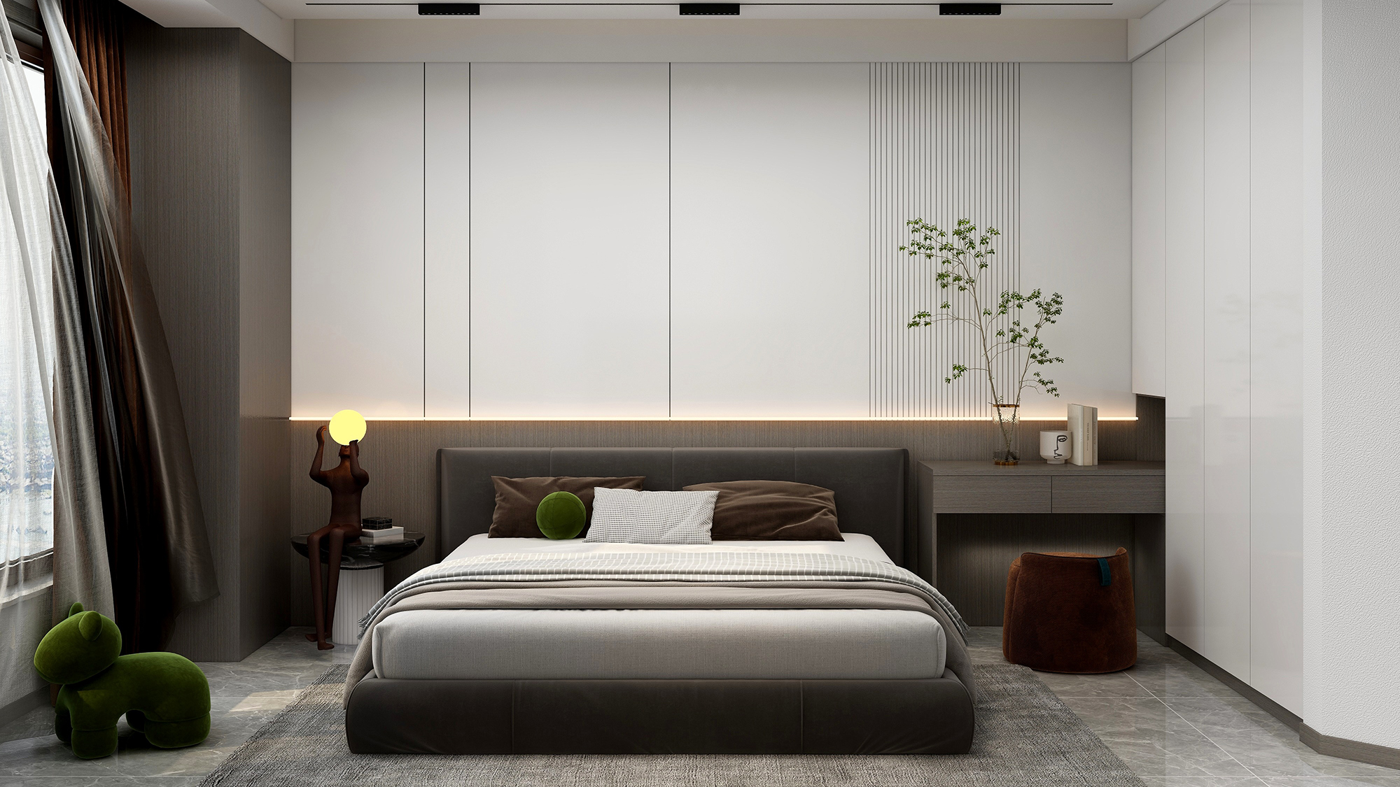 ②70%的基础色、25%的主配色、5%的点缀色留白固然重要,但也可以增添一些色彩,这样既能给视觉带来纵深感,还能打破房子千篇一律的白。比如淡雅静谧的莫兰迪色系就是非常可的选择,再以绿植点缀,整个空间会显得生气勃勃。