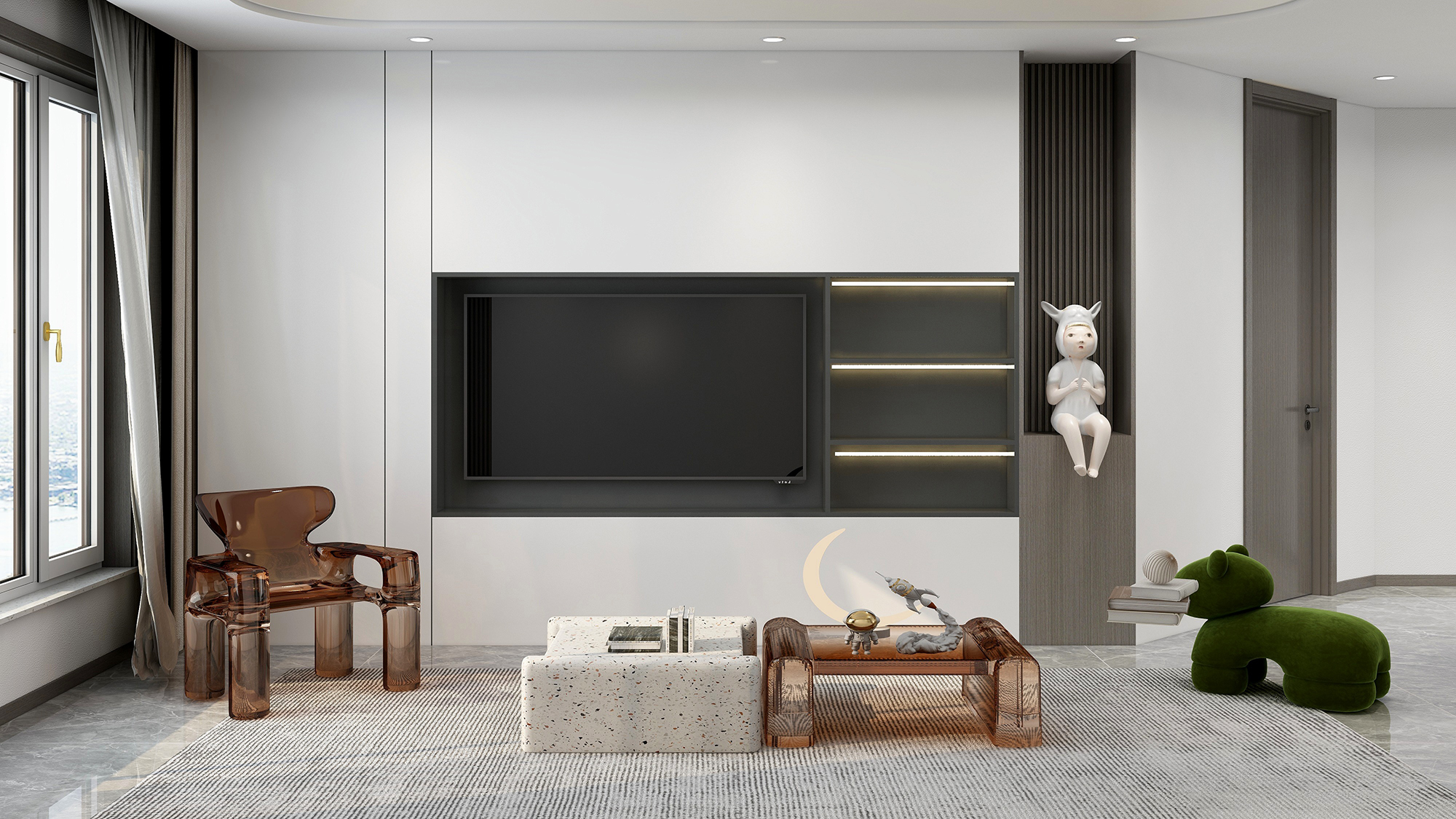 除了细腿家具,还可以选择镂空设计的家具,相对于落地式的家具来说更通透,镂空的设计使空间内盲区更少,空间更显宽大。