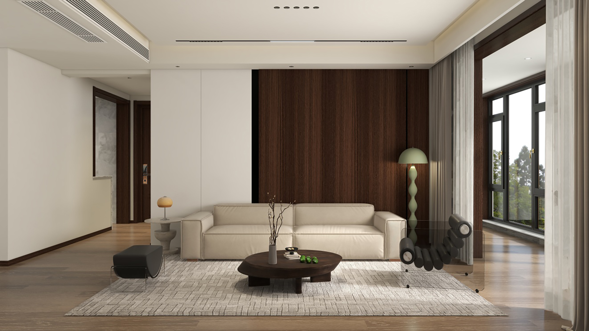 装修以浅色系为主,但部分软装采用咖色,既能延伸视觉空间,又可以满足业主的生活情趣。