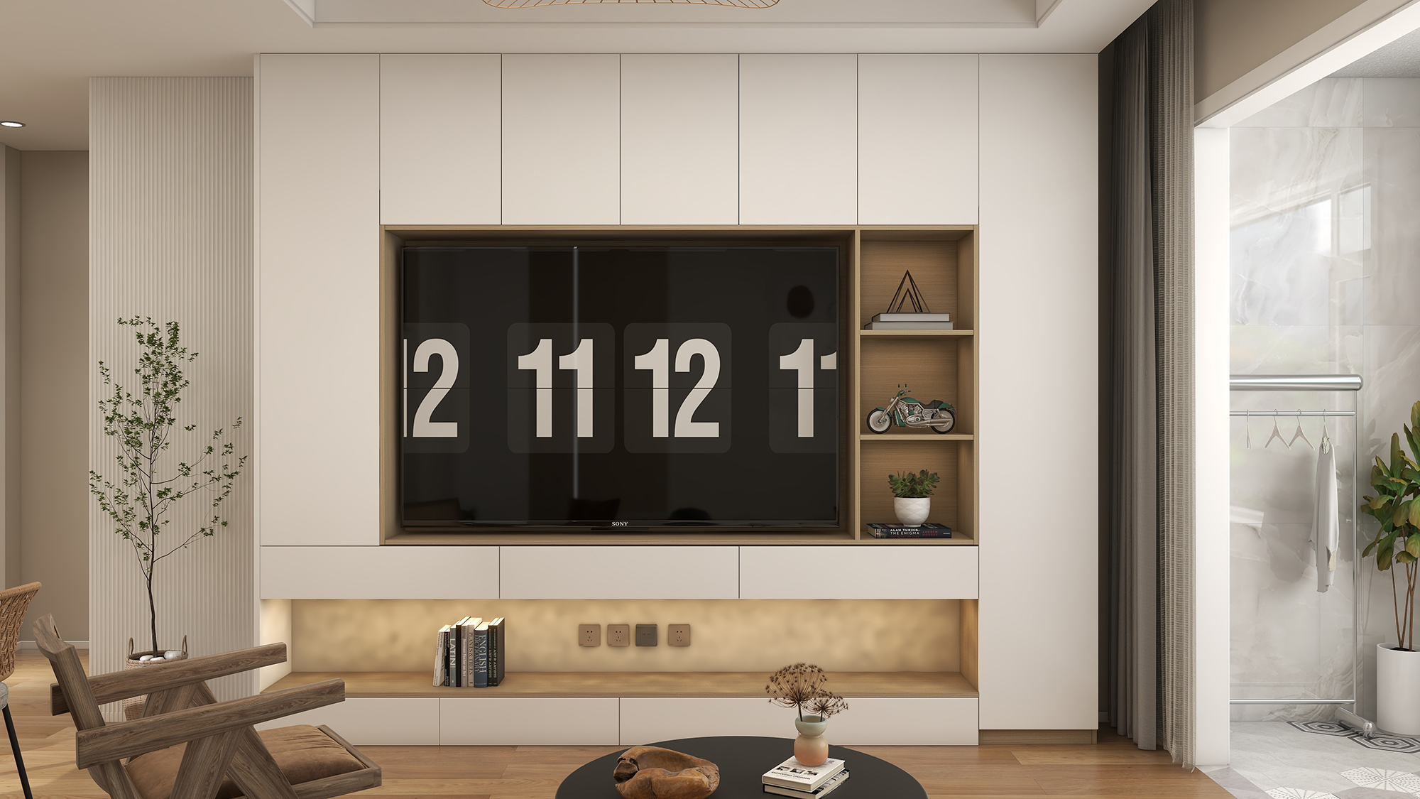 卧室整体依旧以空间色以浅色为主,床头柜上摆放上一些简单的装饰物,增加了卧室的设计感与实用感。一旁的通顶衣柜同样跟随环境色做了原木色与白色,呼应整个卧室空间,也是显得实用、现代而大方!