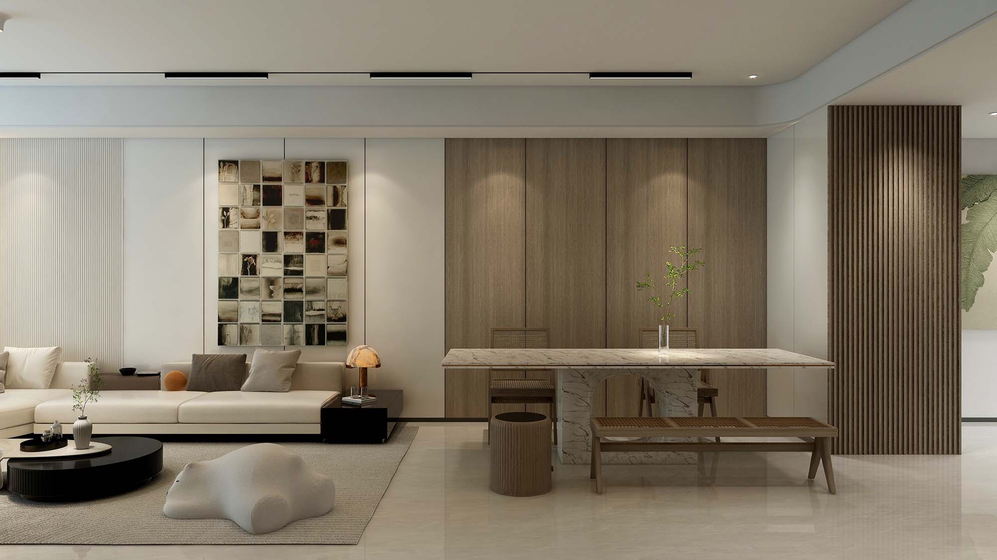 侘寂风,总给人一种清冷感,当搭配上奶油色系让侘寂风多了些温暖,化繁为简的设计,越看越耐看。