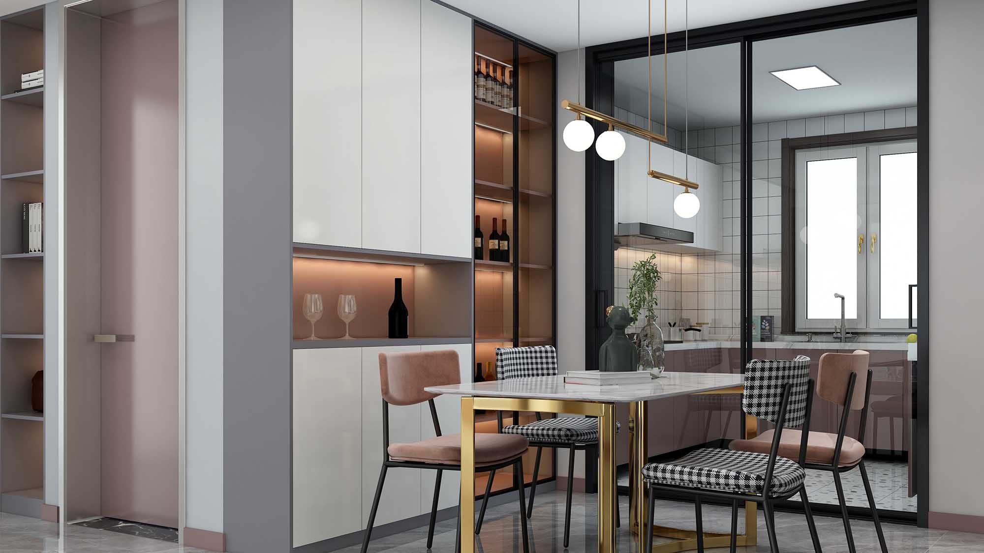 在这套137平米的房子中,整体空间采取现代简约风的空间基础,并适当加入粉色与边框造型的护墙板墙面,为简约的空间带来一种浪漫优雅的高级气质,置身在这样独特风格的空间里,你能感受到的是一种精致优雅的华丽与档次感。