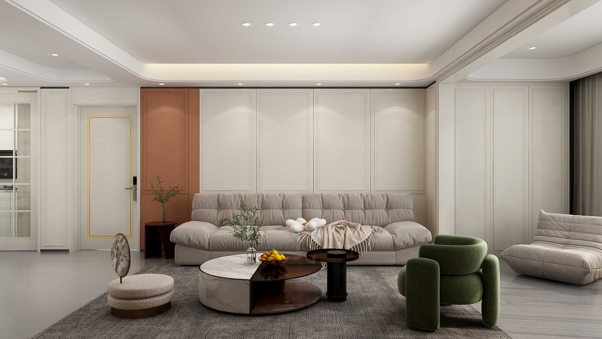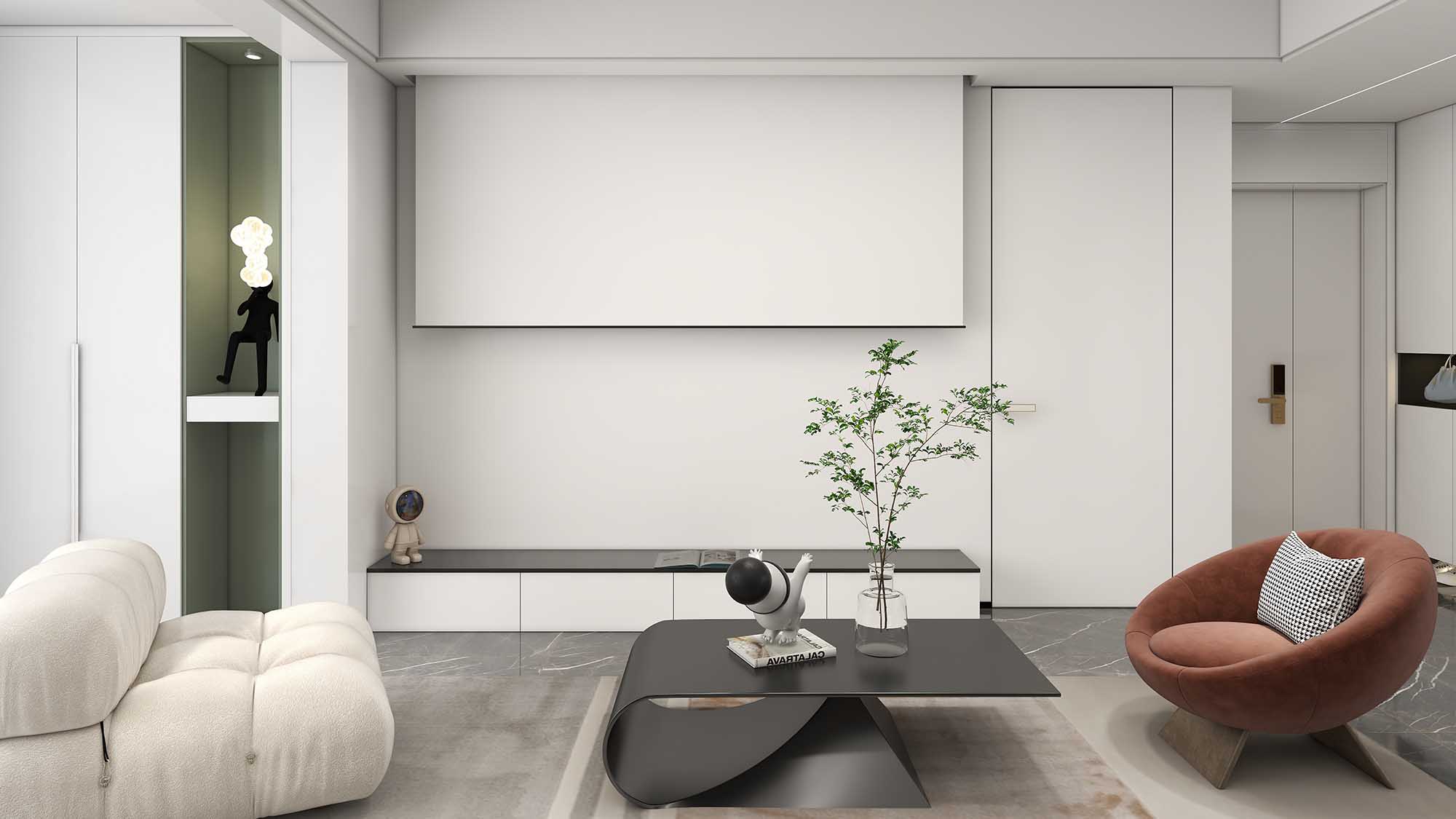 对于小户型来说,大面积使用暗色系,会造成心理与视觉上的挤压感。因此,墙面及家具最好选用浅色系,白色、米色都是不错的选择。但是室内门可以适当选择颜色轻快、设计简洁的款式,这样不仅可以使空间更为活跃,还可以减轻长期生活的视觉疲劳感。