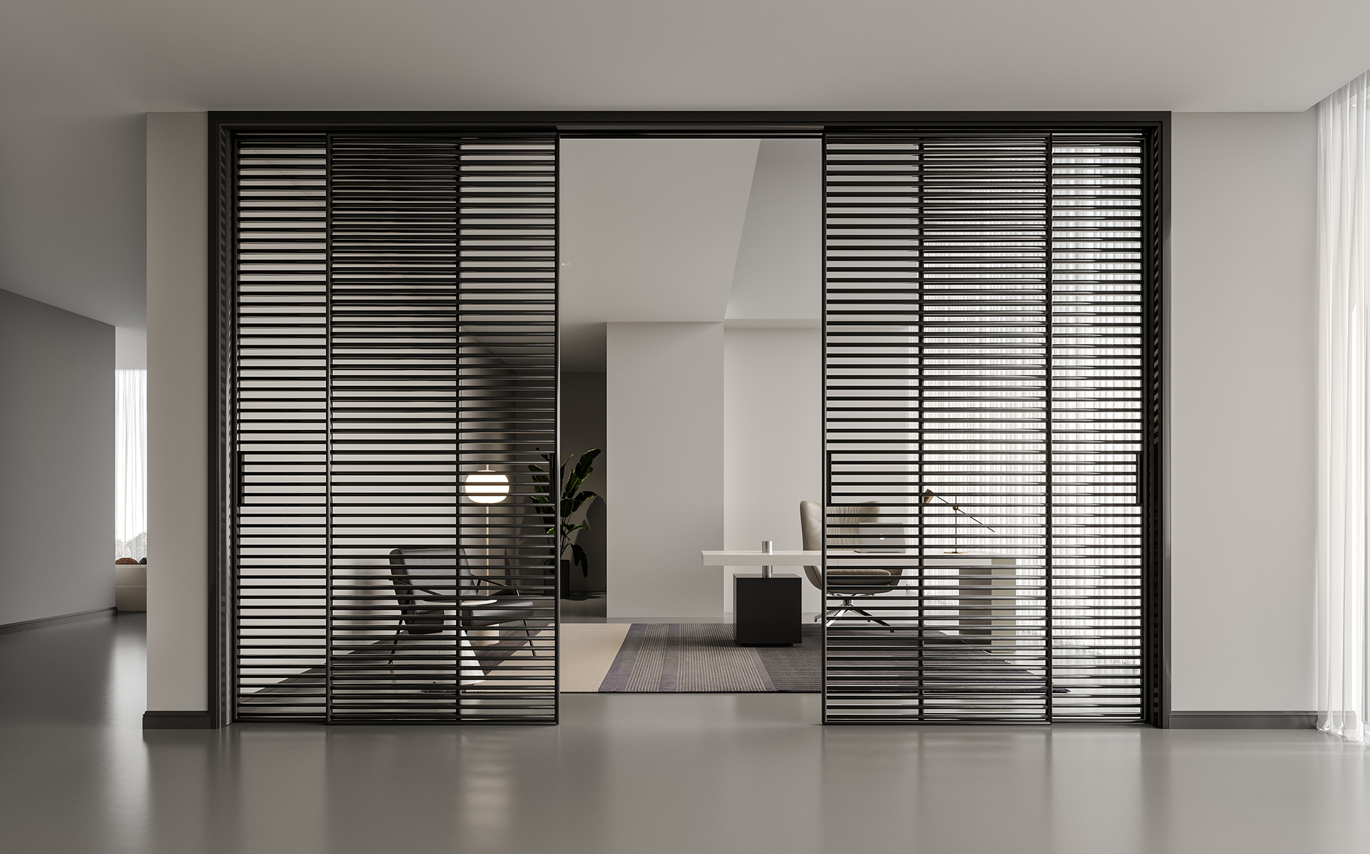 极简格栅门、通透彻亮的玻璃,让所有细节浓缩至美本身、呈现设计美感。透过格栅、光影生动有趣、在起到隔断的同时,也能装饰装整个空间。采用环保性水漆处理,健康环保、触感柔顺。适配空间多样化,保证采光的同时、保护您的隐私。默认标配横格栅、可选竖格栅,隔条间距默认为30-35mm、可定制格栅间距。