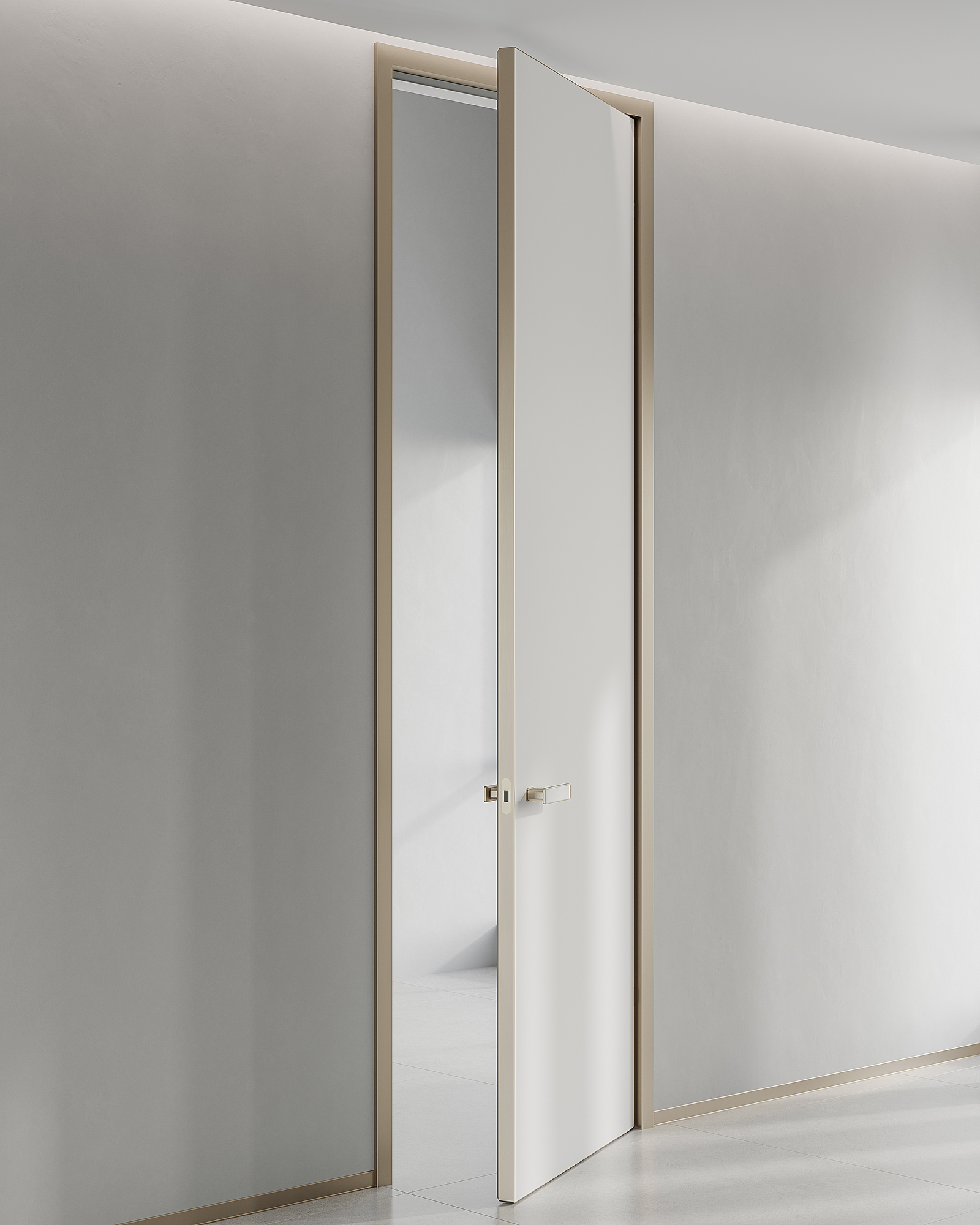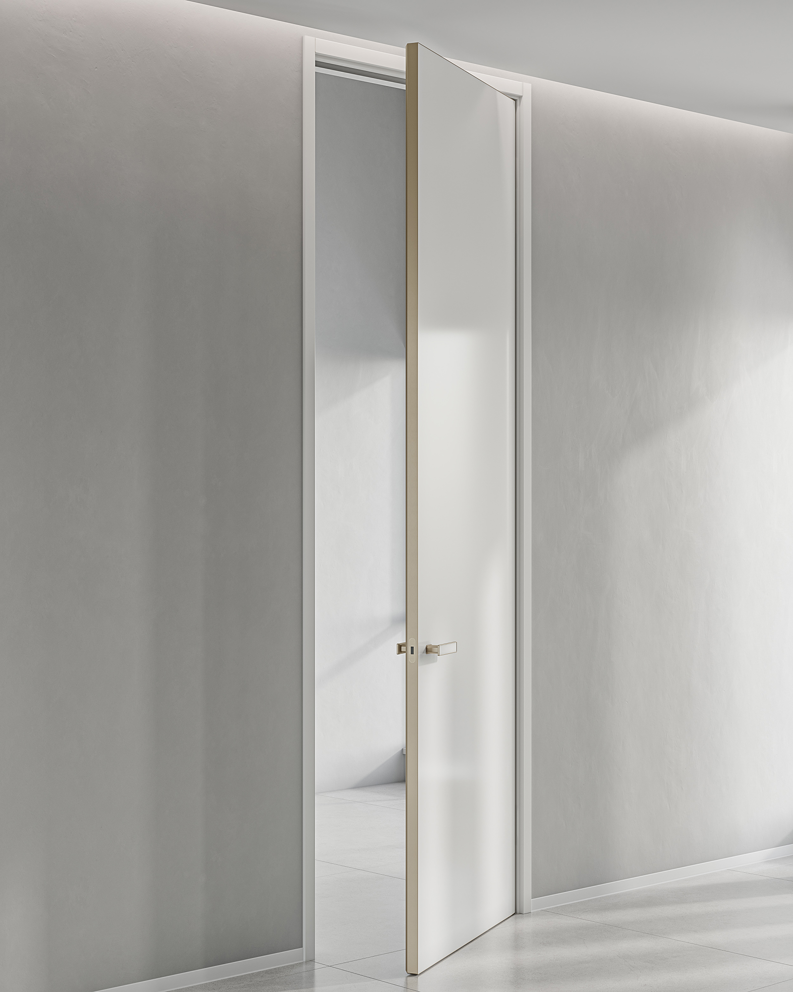 门型精美流畅的关键点在于锁体及合页隐藏式设计,执手门扇同质同色,隐藏不外露的五金低调简约,让整樘门充斥着平滑的顺畅感。全新降噪结构与铝封边合为一体,磁吸条隐藏不外露,是功能与美学的融合。