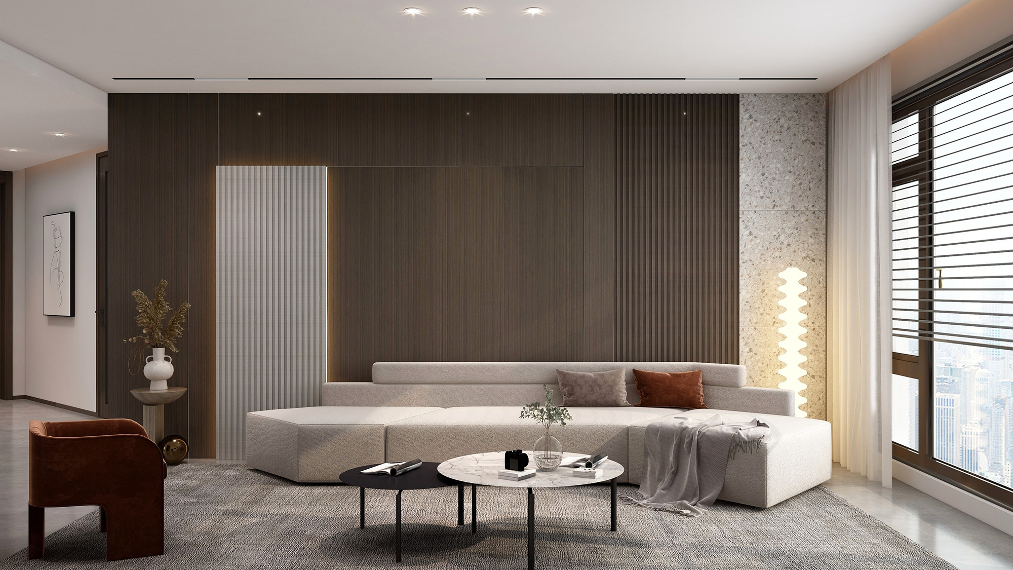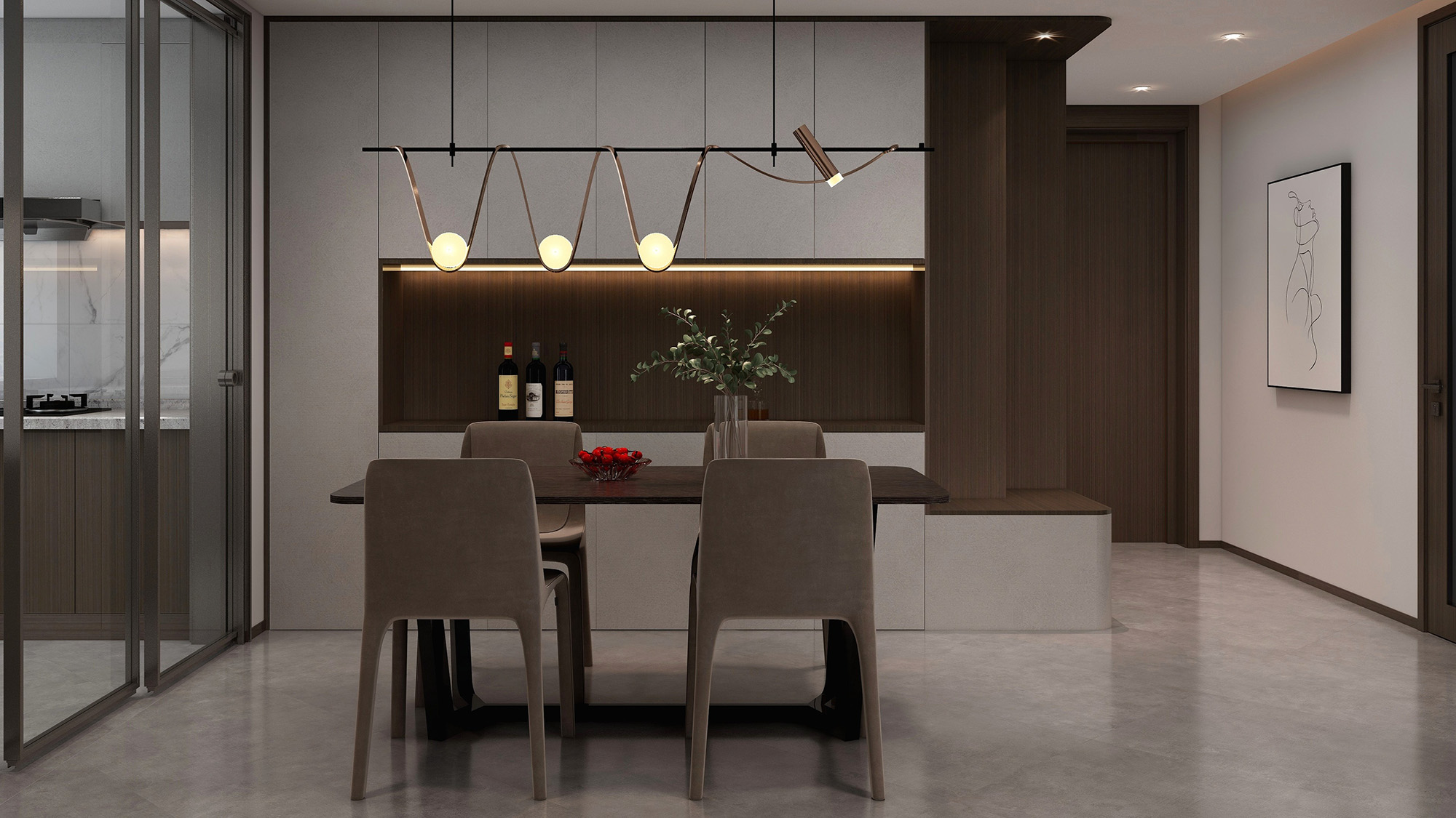 低明度色彩为基调以现代简约木质纹理,重新演绎东方美学,在理性中,凝练东方禅韵的内在意境。