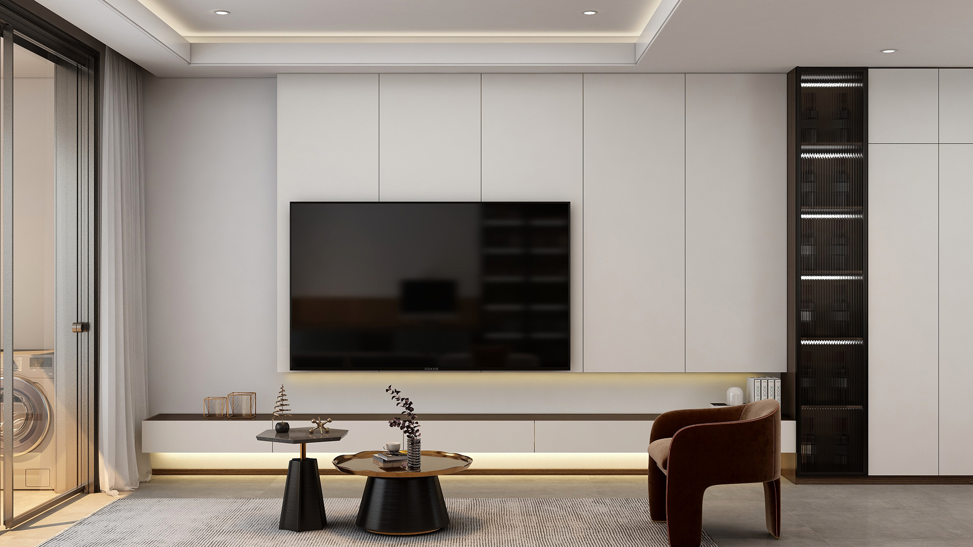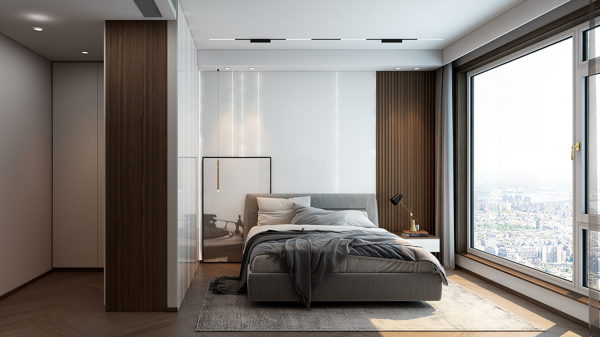 灰色系空间与烟熏黑胡桃完美搭配,以匠心妙想投射极简构想。清新可见的木质纹理层次立体,给人一种低调内敛、大气沉稳的感觉,与现代轻奢家居有着与生俱来的默契。