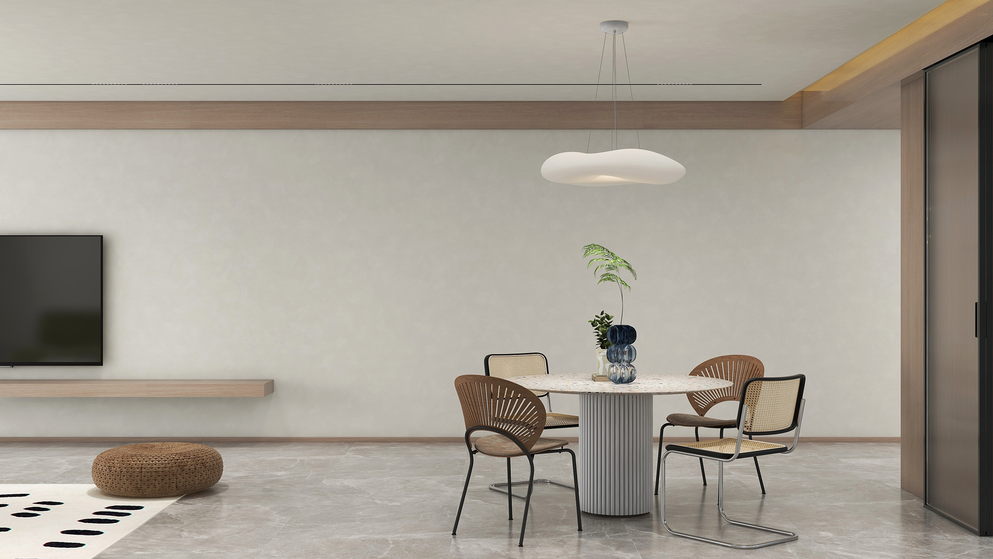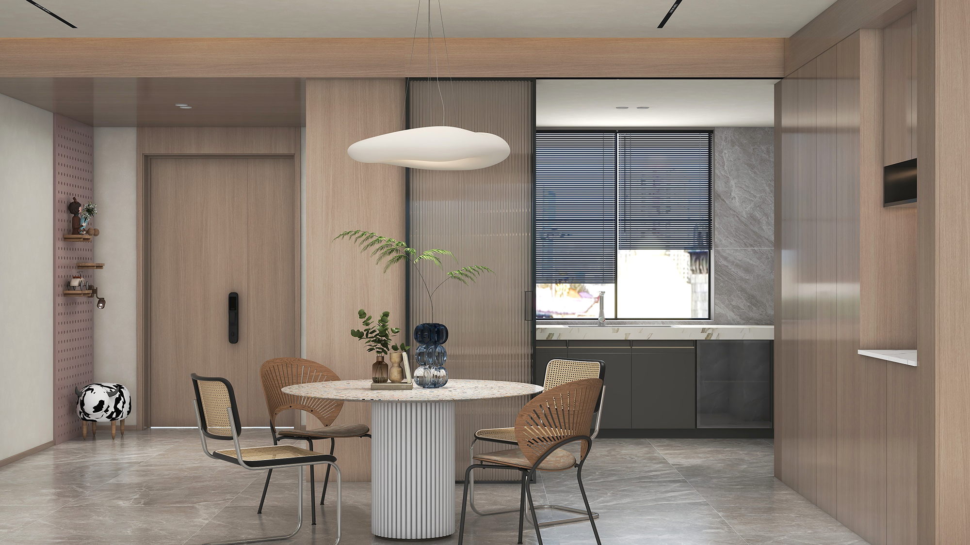 厨房的面积不是很大,为了节省空间,选择安装锦上宅极简窄边推拉门作为厨房与餐厅的隔断。门扇关闭时嵌入门框,门框内装胶条更加密封,更降噪,不仅节省空间,提高空间利用率,同时更能阻隔厨房噪音,让客厅免受厨房噪音的干扰。