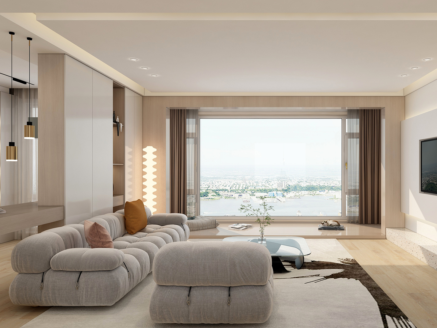 一门到顶,空间上拉高房间的视觉效果,视觉上显层高,挑高设计延展空间的美感。