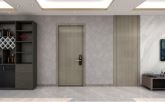 家中第一道门是入户门,一款门内门外双色的入户门可以让家装风格更加和谐。室内,选择造型简单的墨本色竖纹颜色,没有过多的造型和线条,让入户门看起来简洁却典雅。