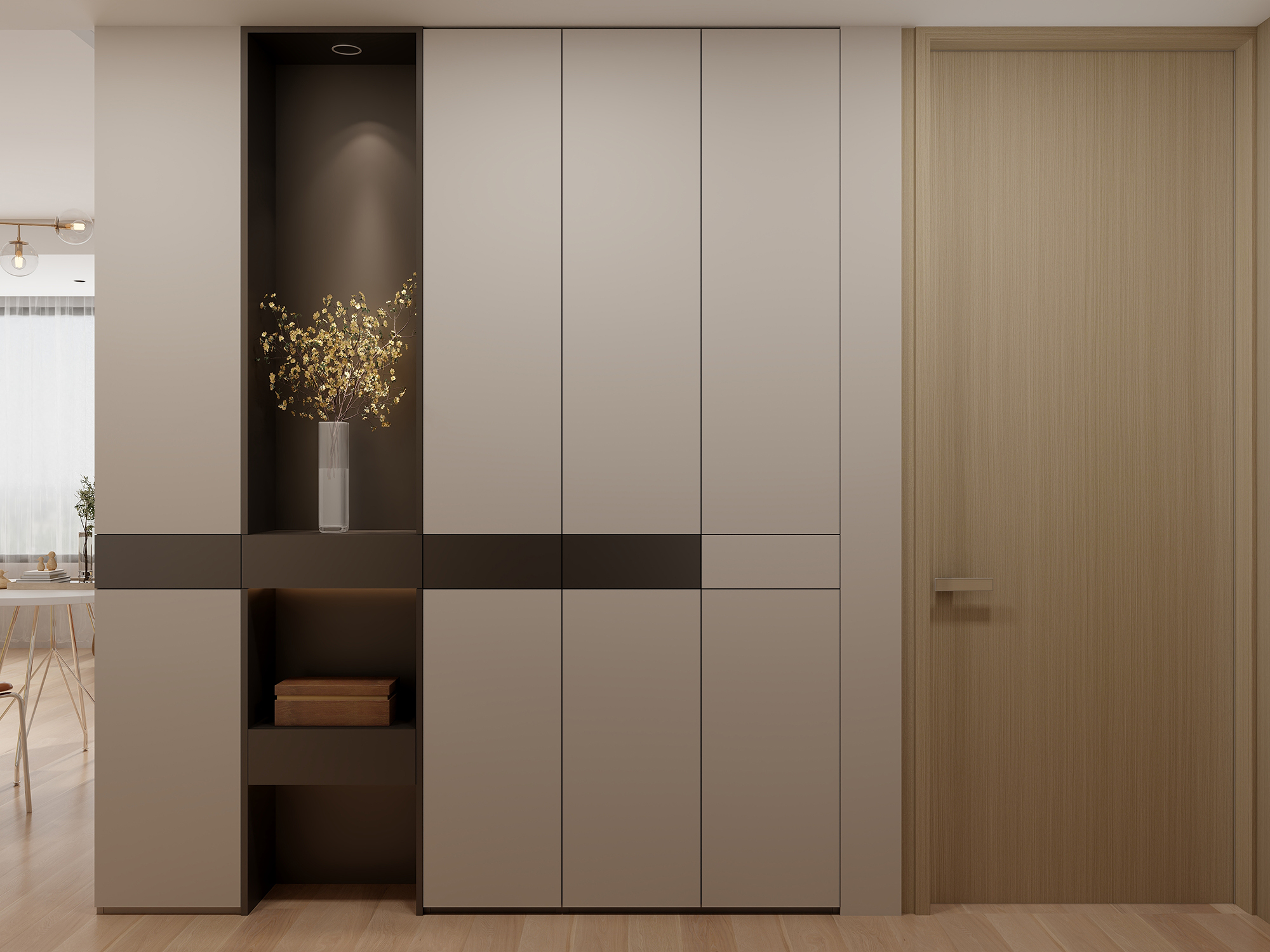 在现代简约风装修中,我们可以选择使用TATA木门至臻系列作为客厅与卧室之间的分区门。这样不仅能起到空间分隔的作用,还给整个房间带来了一份温暖和质感。搭配现代简约风的家具和装饰品,营造出统一、和谐的整体效果。例如,可以选择简约风格的沙发、茶几和墙面装饰,与木门的原木纹理相呼应。