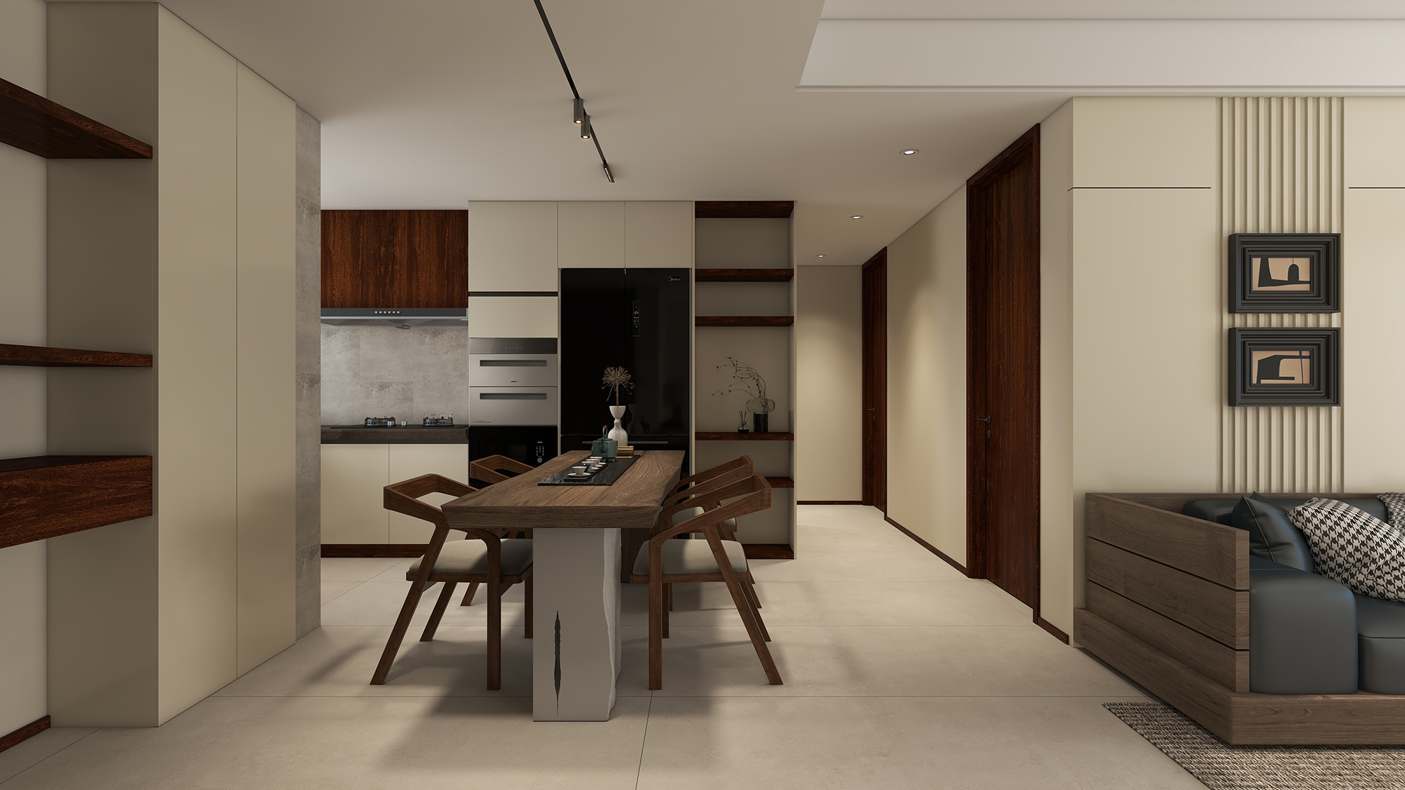 简单来说它是一种由美拉德反应延伸的一种新的配色思路,与夏日流行的元气多巴胺色彩不同。美拉德风是以棕色为主调,为空间创造温暖仿古的独特氛围。