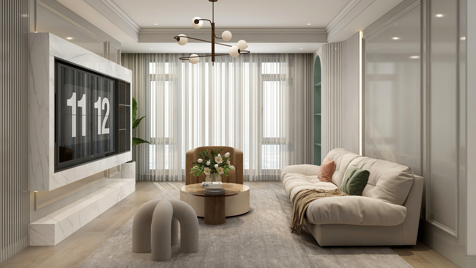 落地窗选用锦上宅门窗,卓越的降噪性能和清透玻璃相得益彰,勾勒出凝练的生活美学。