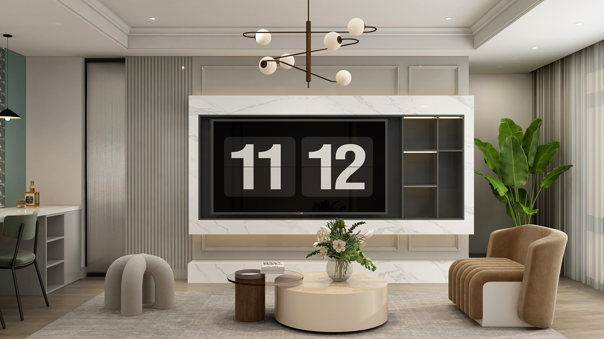 现代感的沙发与绿植搭配,呈现了一处浪漫温馨的会客空间,装点的灵动摆件书写着主人的独到趣味。