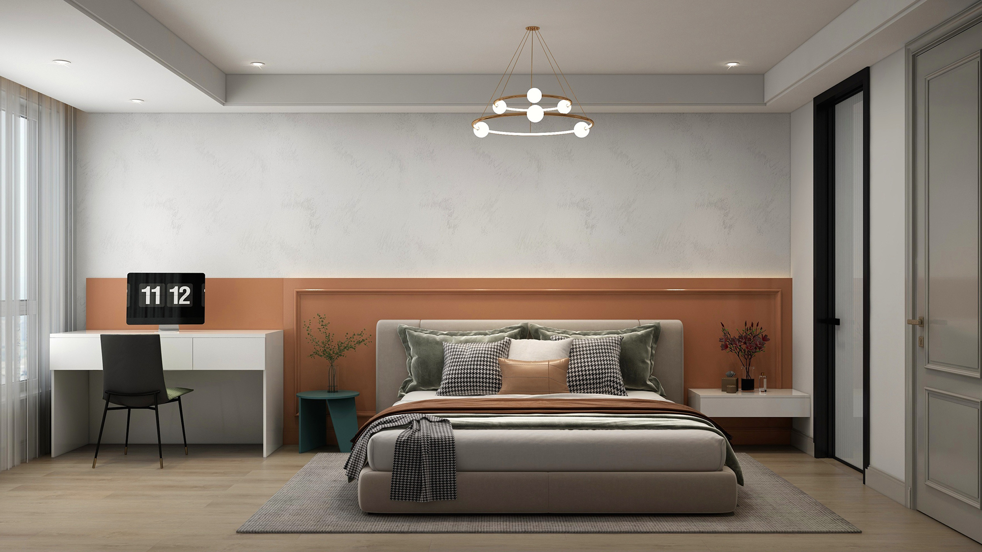 齐柏林灰定制背景墙,呼应空间主色调之余更显层次感。