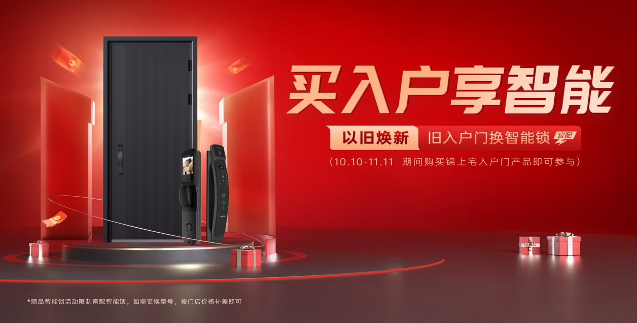 买入户门享智能,从此开启安全便利的生活体验!购买锦上宅入户门即可参与旧入户门换智能锁哦~