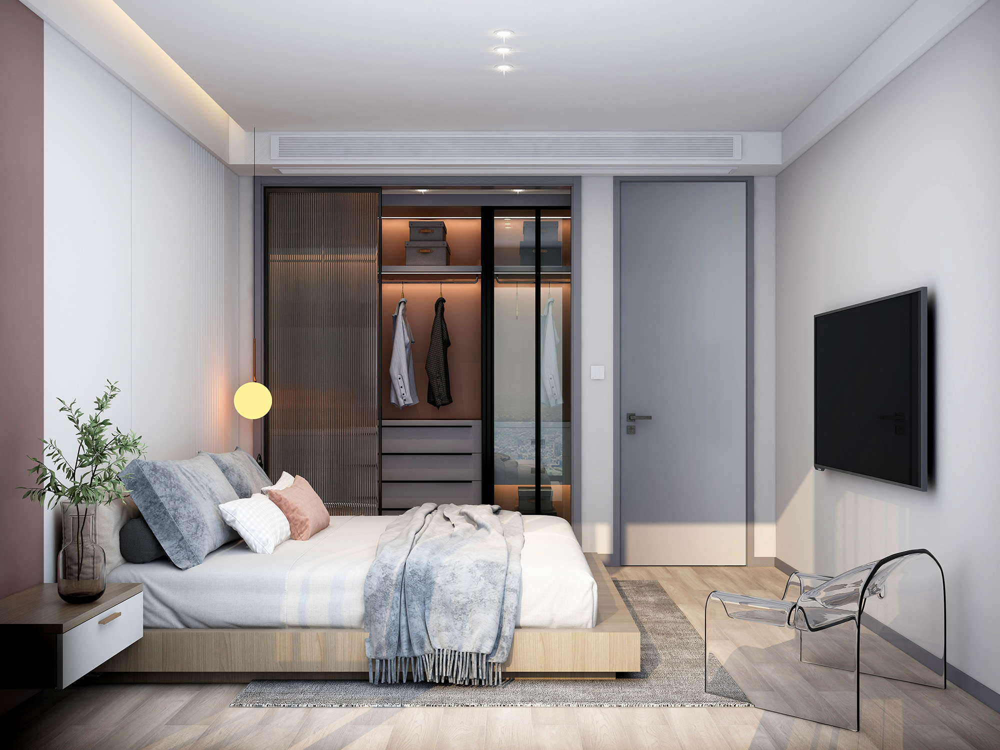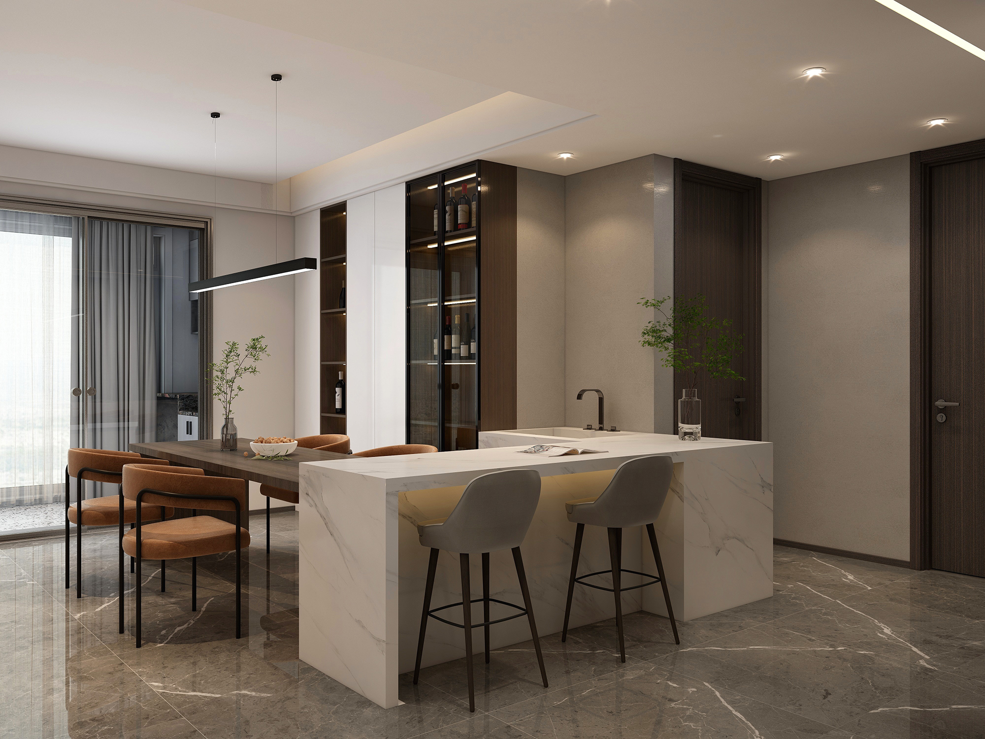 杏子灰是灰色调的暖色,很高级,搭配豆青色木门也可打造简欧风,或者是搭配带些金色纹理的墨本色,瞬间提高房间的格调
