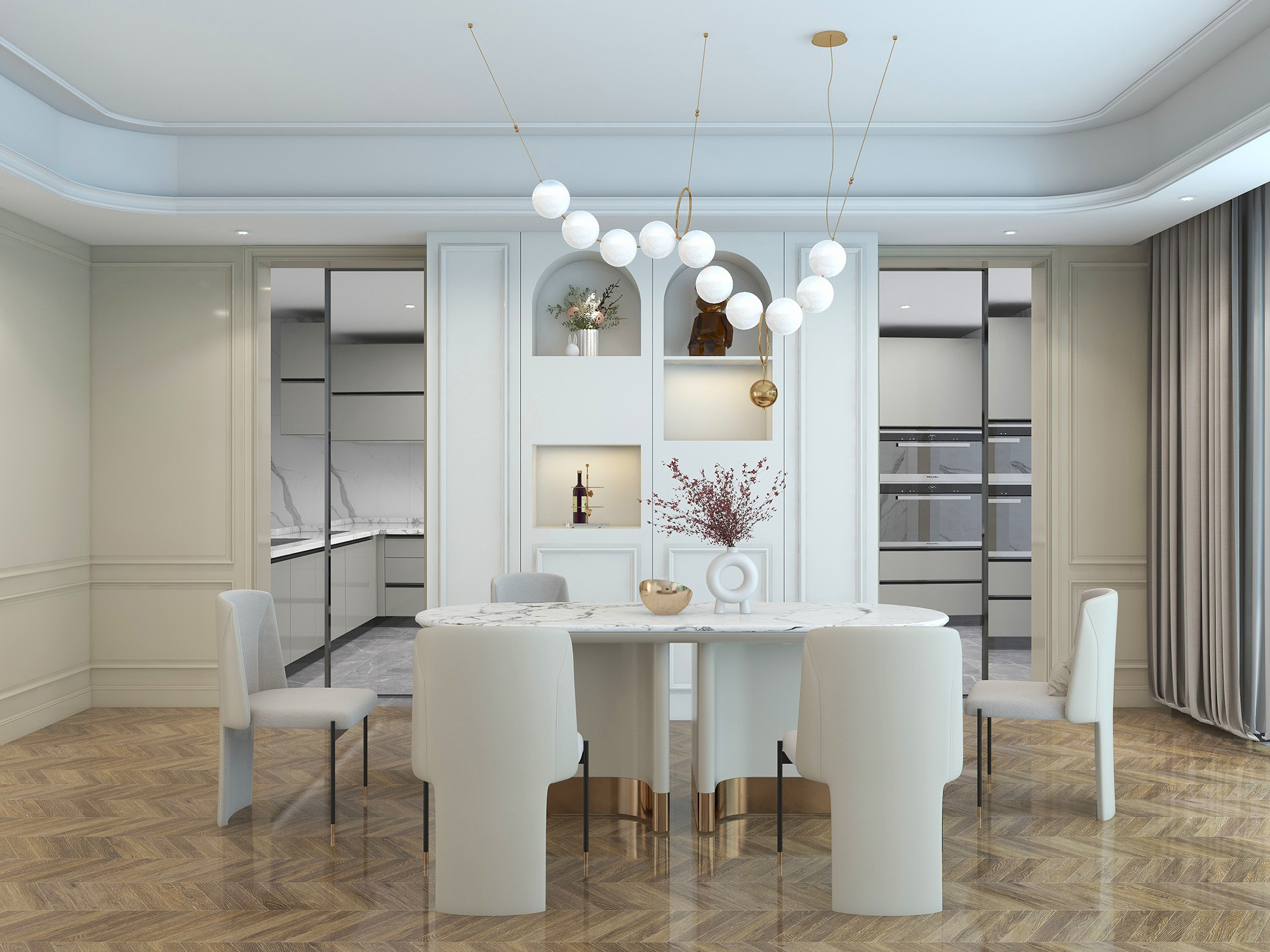 现代奶油风的设计语言中,线条是最为简单初始的装饰元素平行或交错,延展出秩序和美感。氛围的营造是现代奶油风的不可或缺,为静谧的空间装点上温柔色彩,瞬间注入浪漫和优雅。