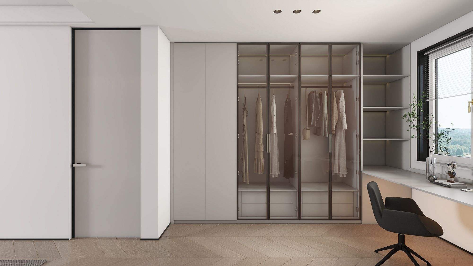 其简约、时尚的外观,无疑给家居环境带来别致和空灵的氛围。门扇与墙壁贴合,提升外立体面整体性。人性化功能设计,革新家居体验。