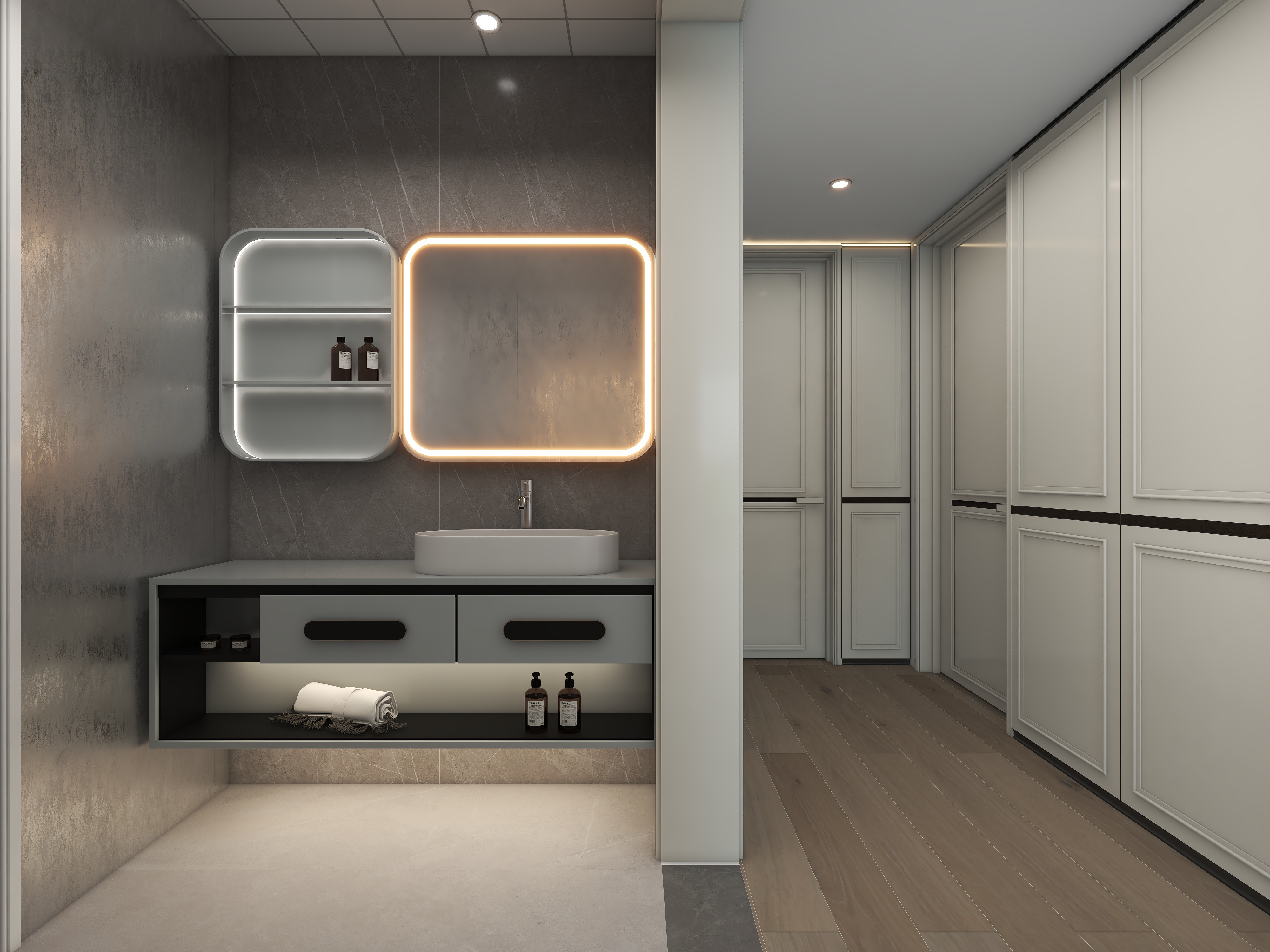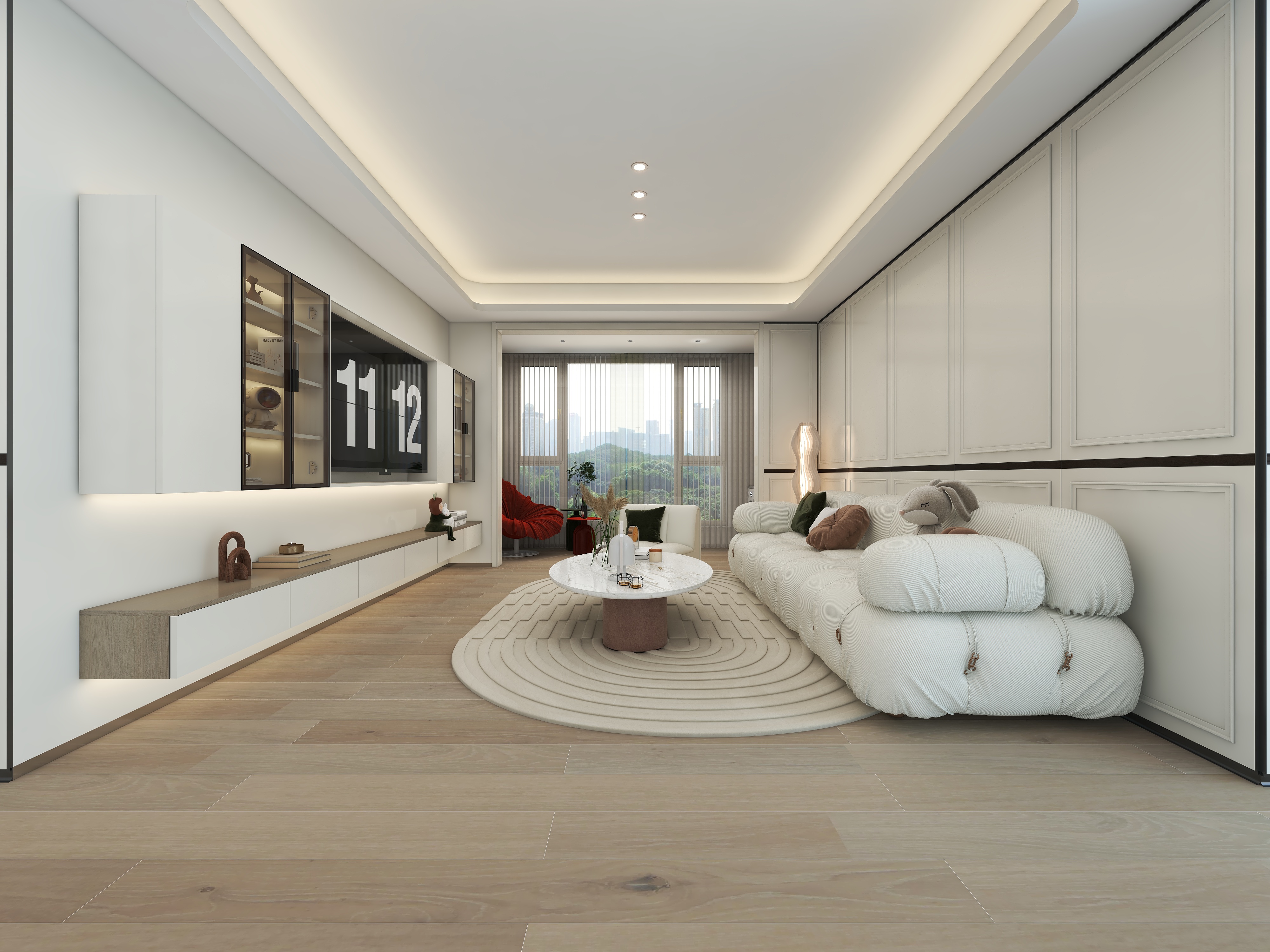 配色上是柔和的奶油色系,当然也提供多种颜色可选择或者做拼色设计,都可为您专属定制。柜体内还可定制内嵌式的灯带设计完美提升家居氛围感。