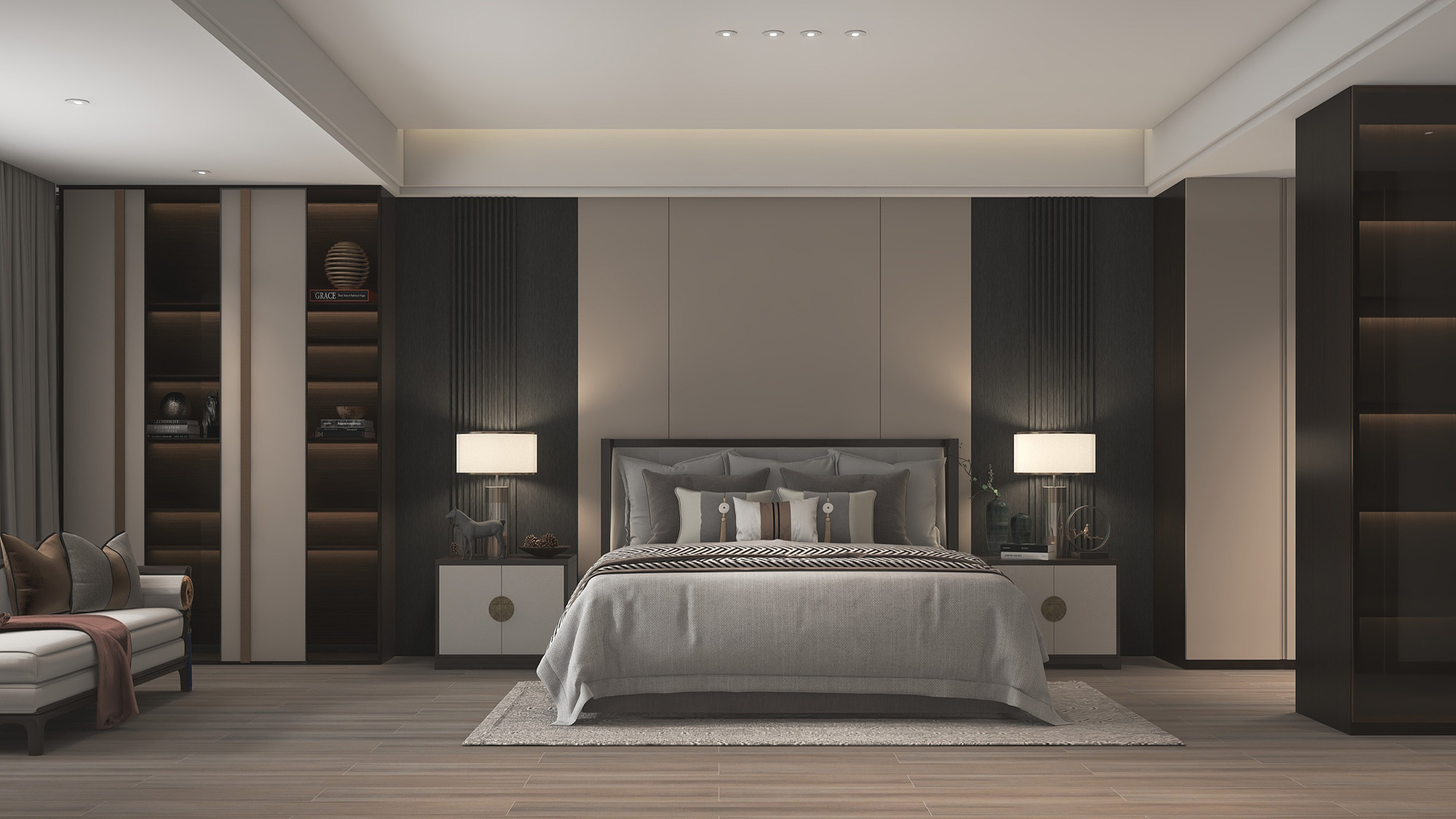 可以选择参考新中式的设计思路,每一个角落,每一处细节,采用传统中式与现代简约风相融合贯通。