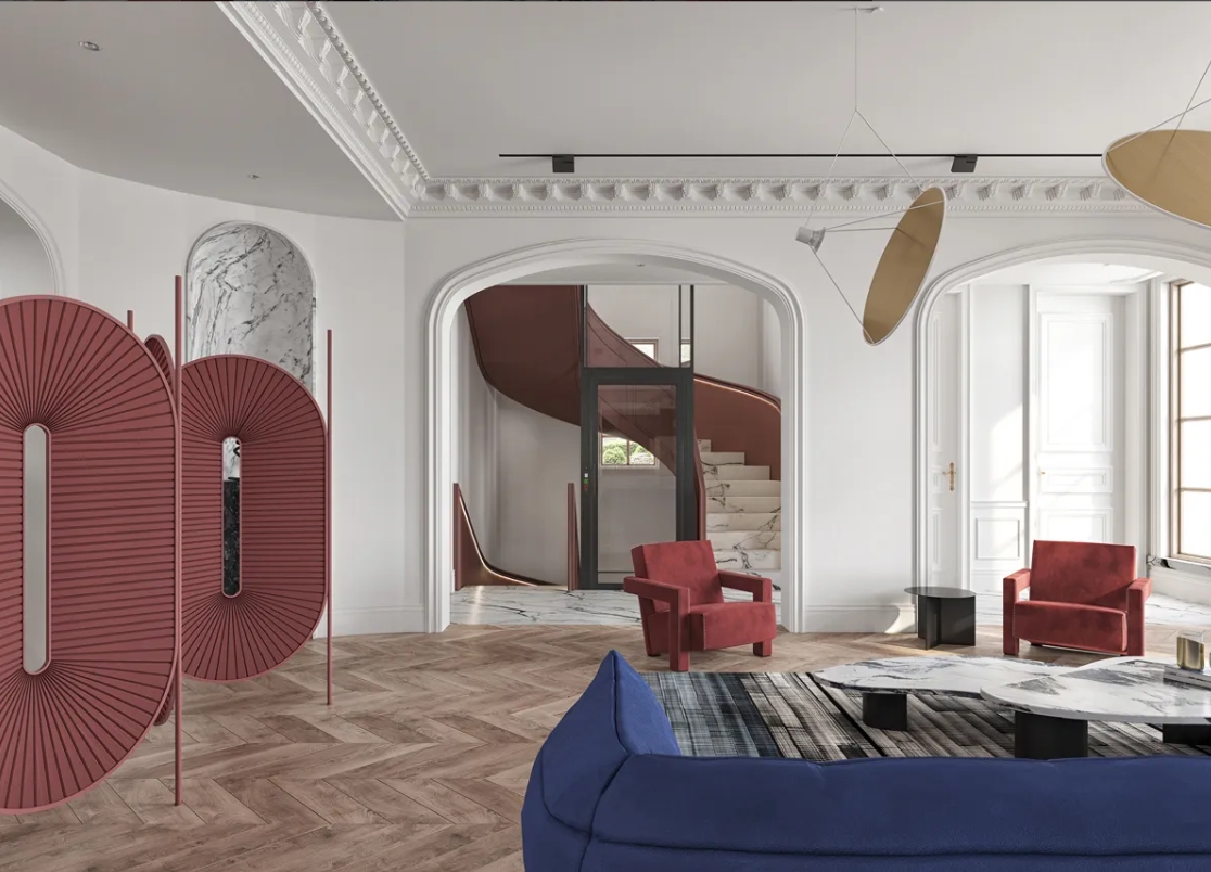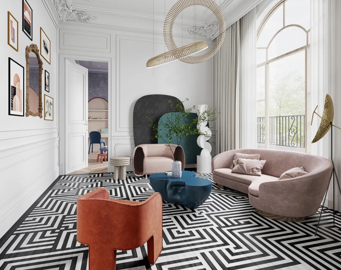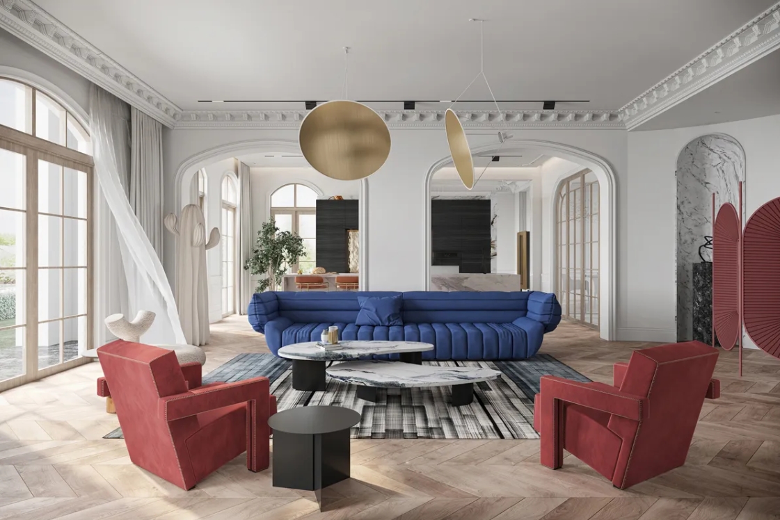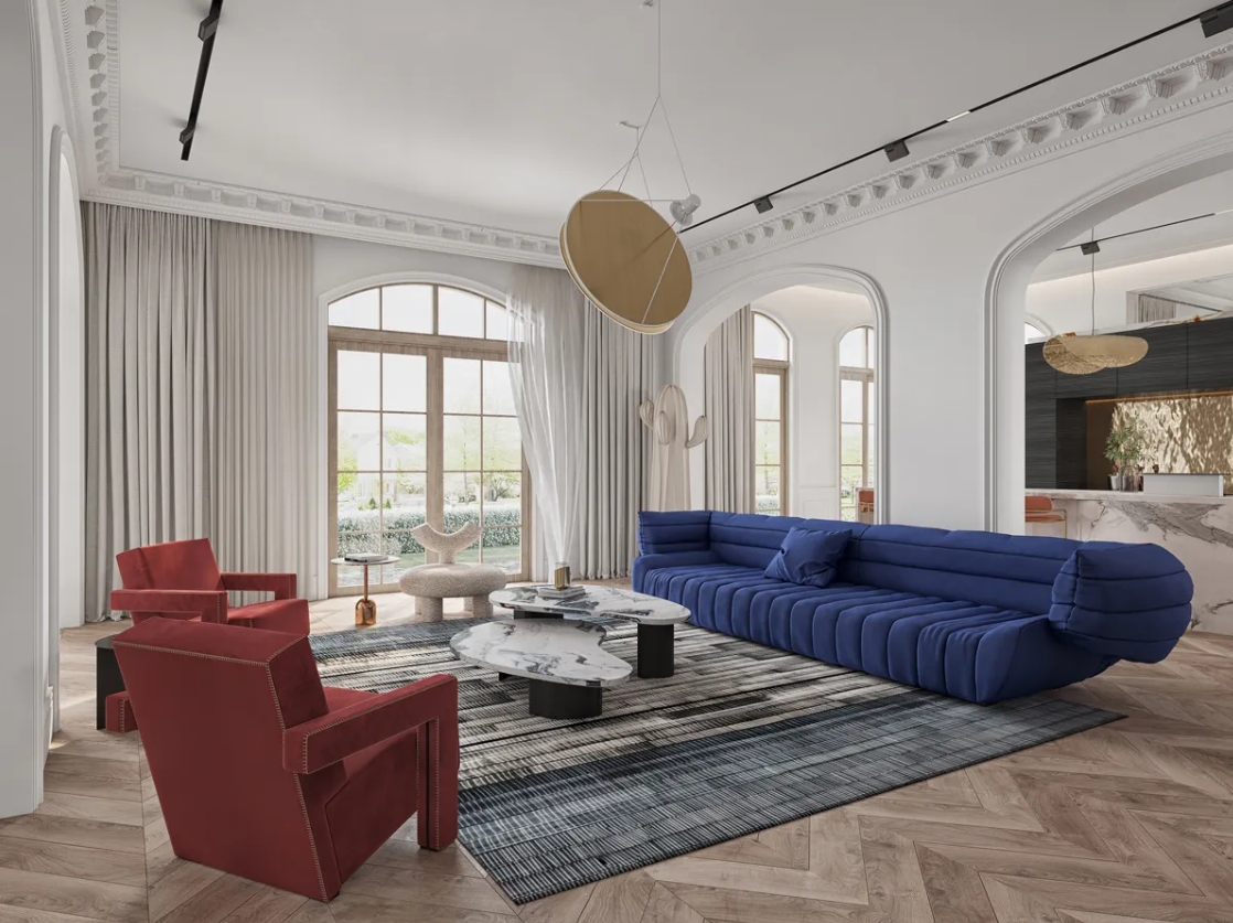在室内设计中也一样,法式风格仍然被广泛使用着:能够很有效地填充空间,将大空间打造出一种慵懒高贵感和自在的优雅度。