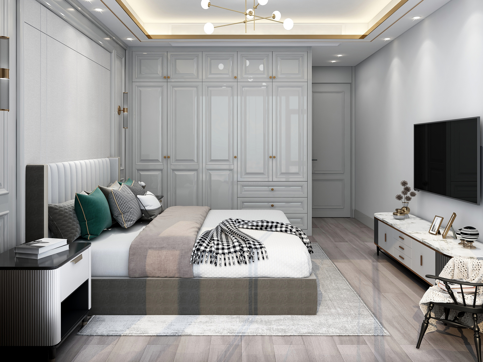 卧室做了一体式衣柜,与门同系列,在视觉上整个浅色统一色调 ,简约又大气。整齐归一的储物空间,满足你的各种储物需求。